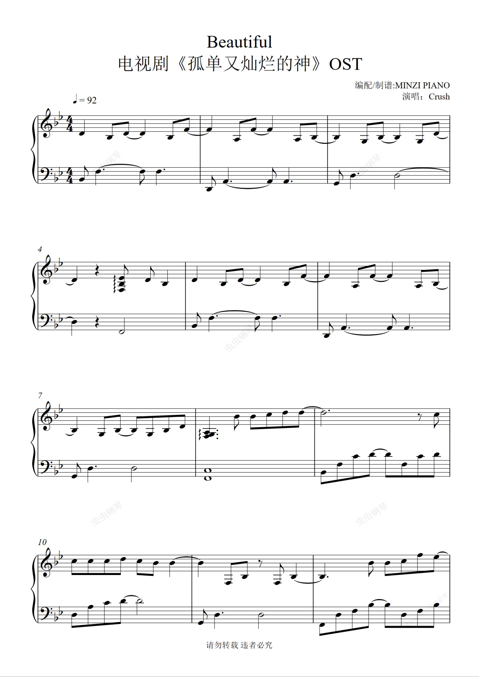 钢琴谱:鬼怪 OST《Beautiful》Crush