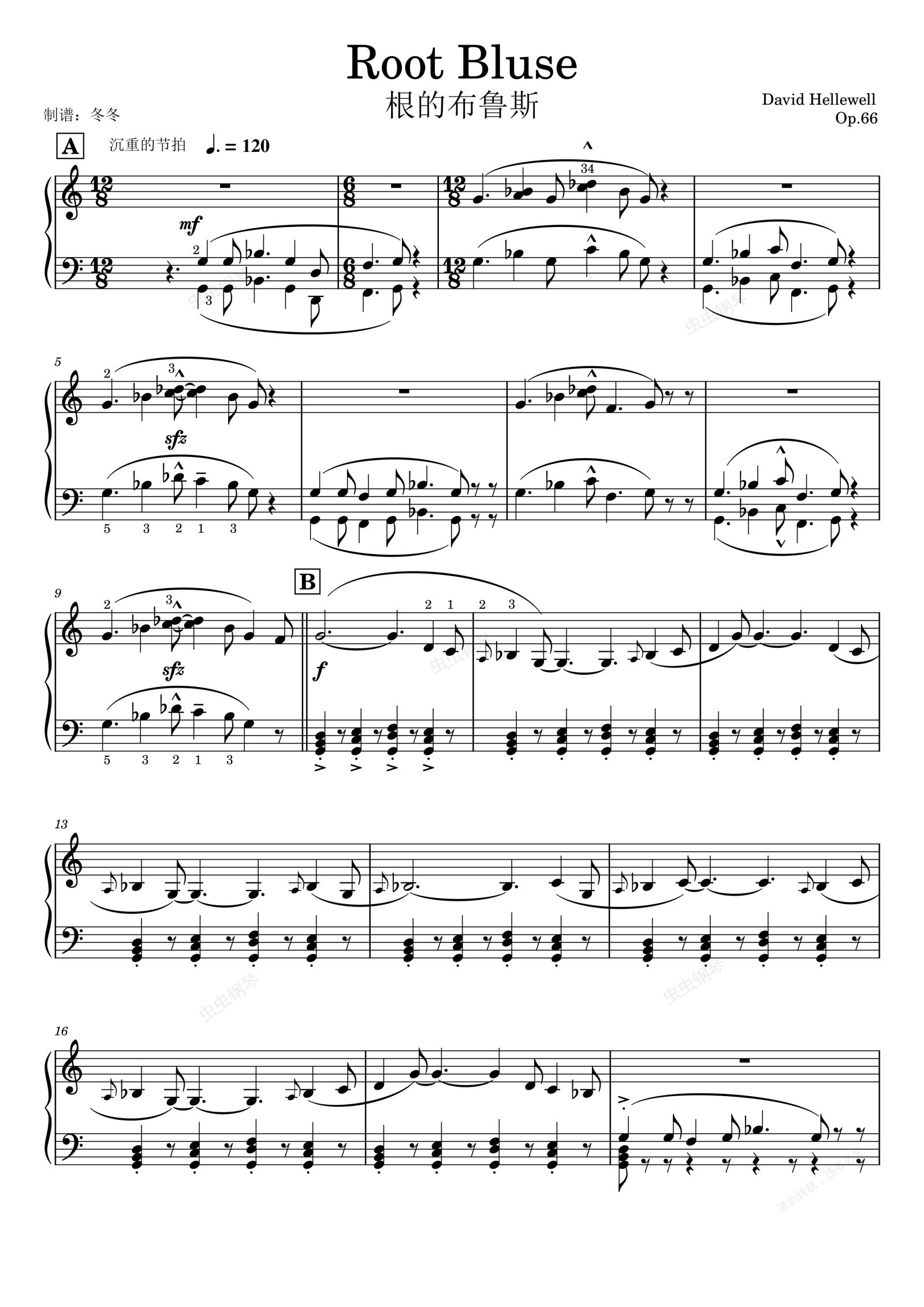 钢琴谱:Root Bluse(带指法)