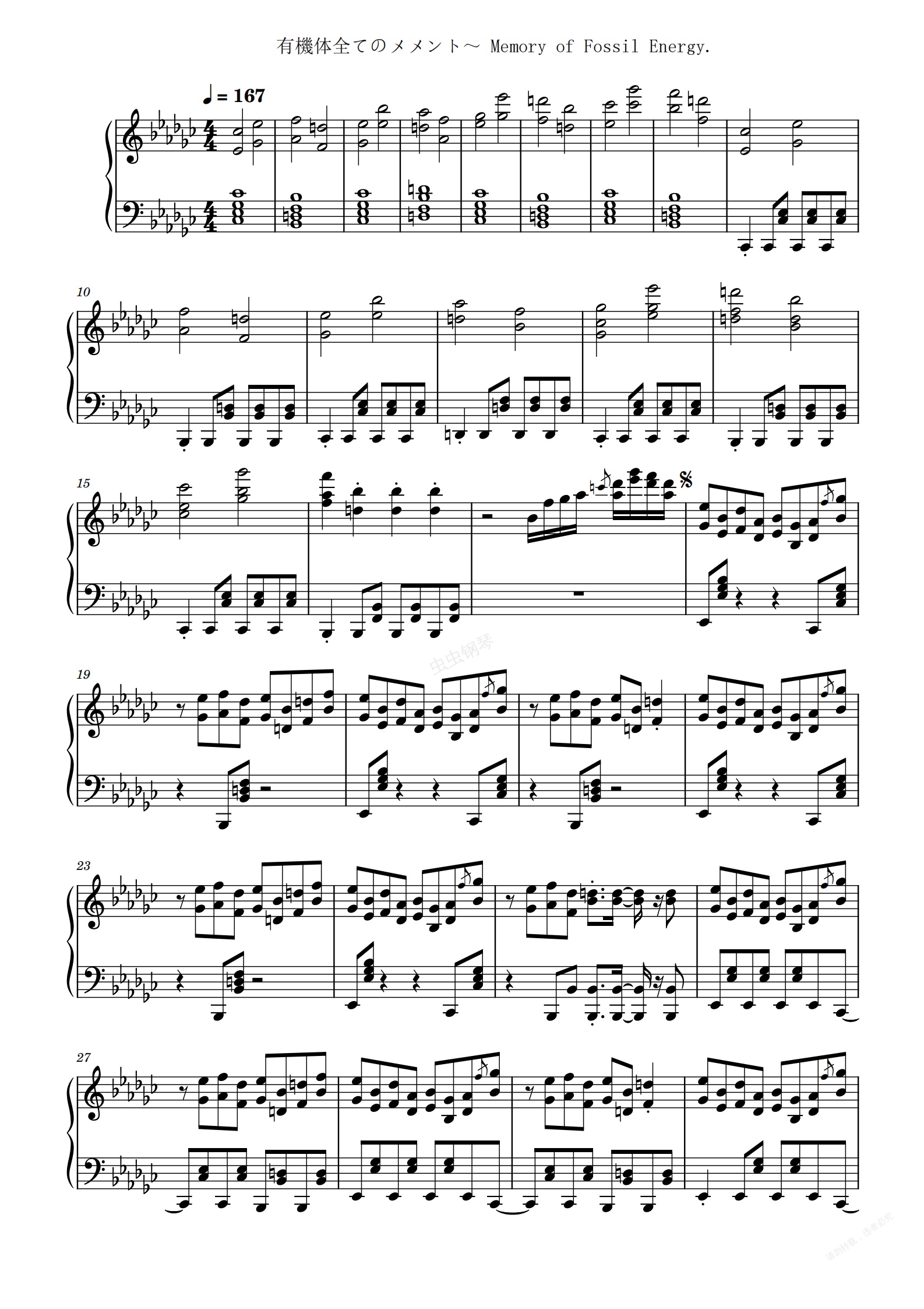 钢琴谱:【东方刚欲异闻】全有机体的记忆 ~ Memory of Fossil Energy.