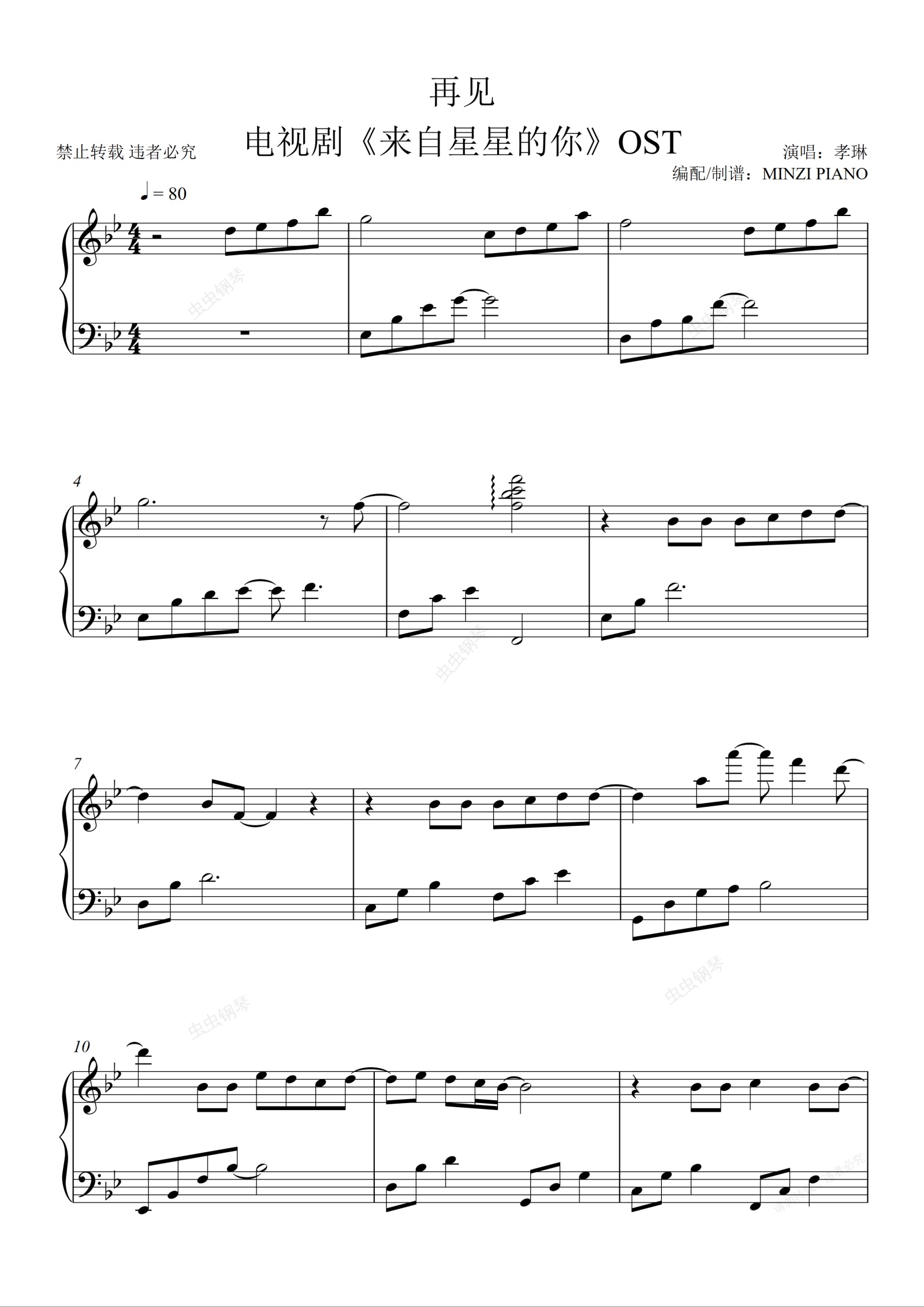 钢琴谱:孝琳《再见/안녕》来自星星的你OST