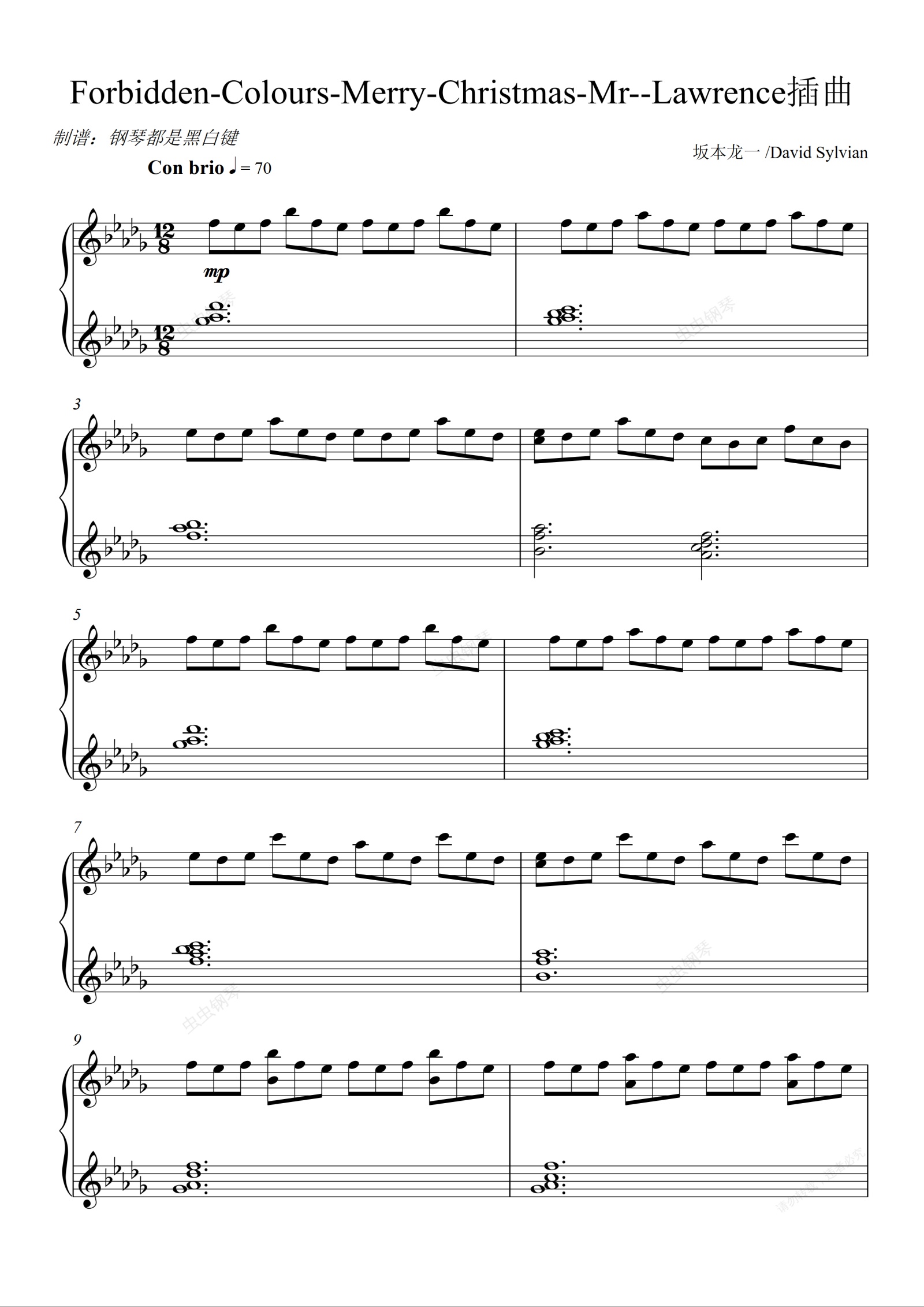 坂本龙一-Forbidden-Colours-Merry-Christmas-Mr--Lawrence插曲 [原调]