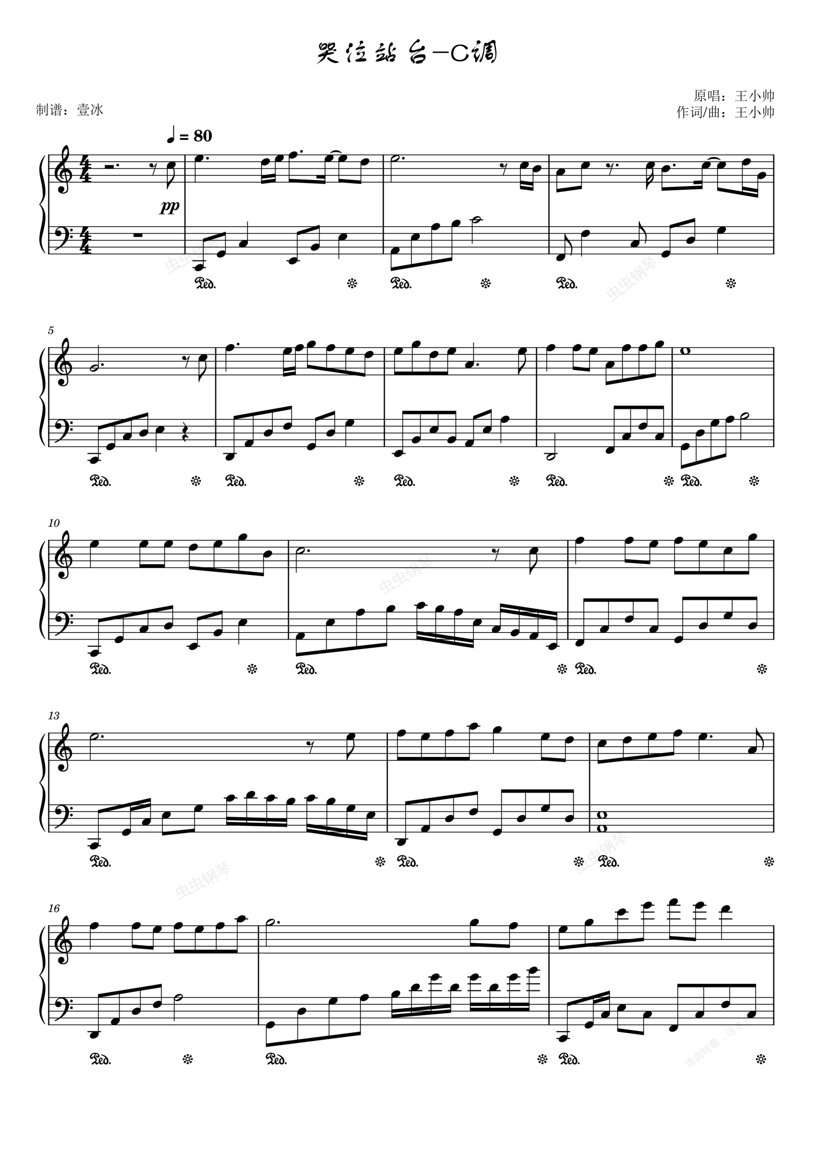 钢琴谱:哭泣站台//王小帅-C调版 简单 易上手