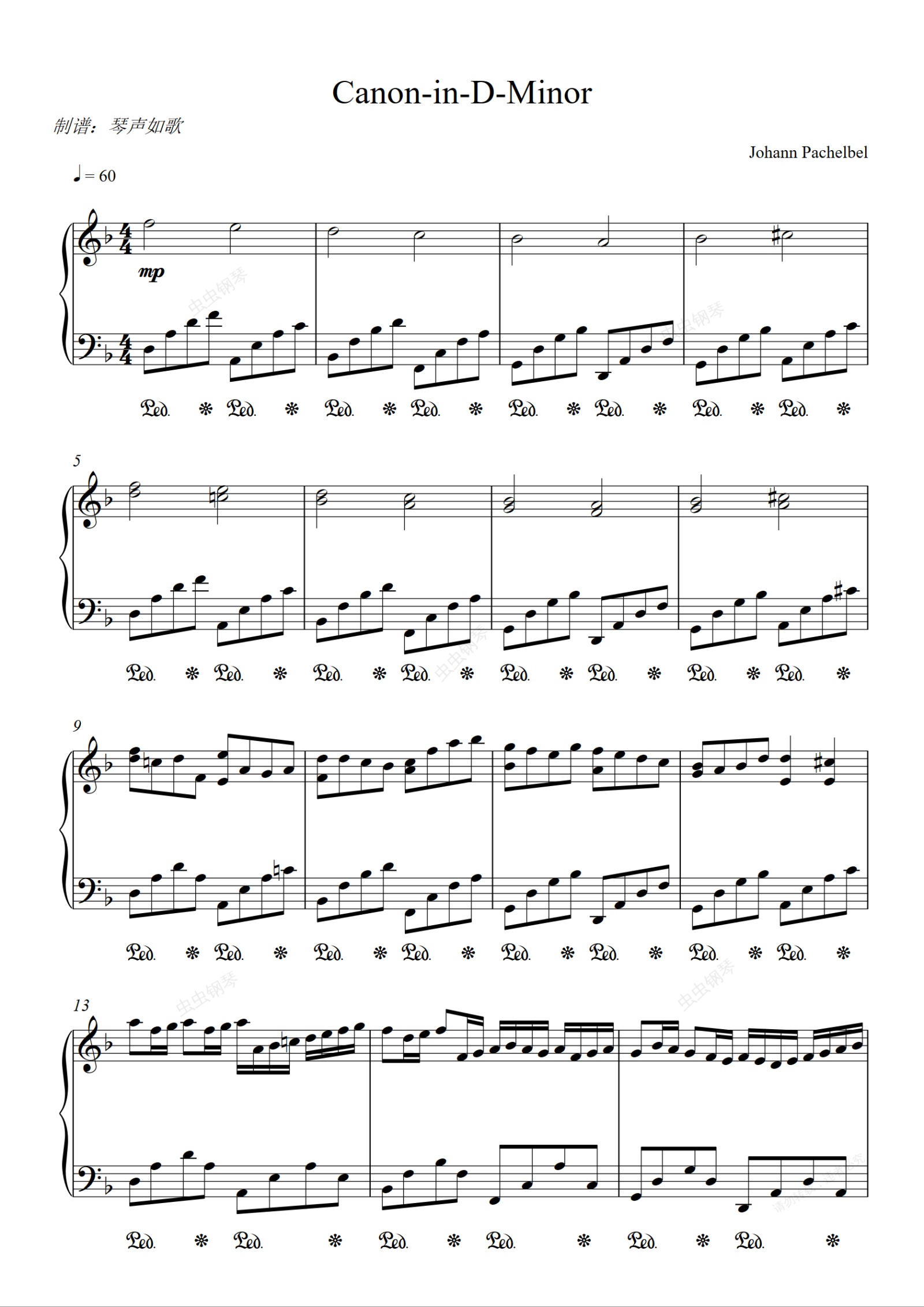 Canon in D Minor,即此首卡农是D小调的,比较简单。