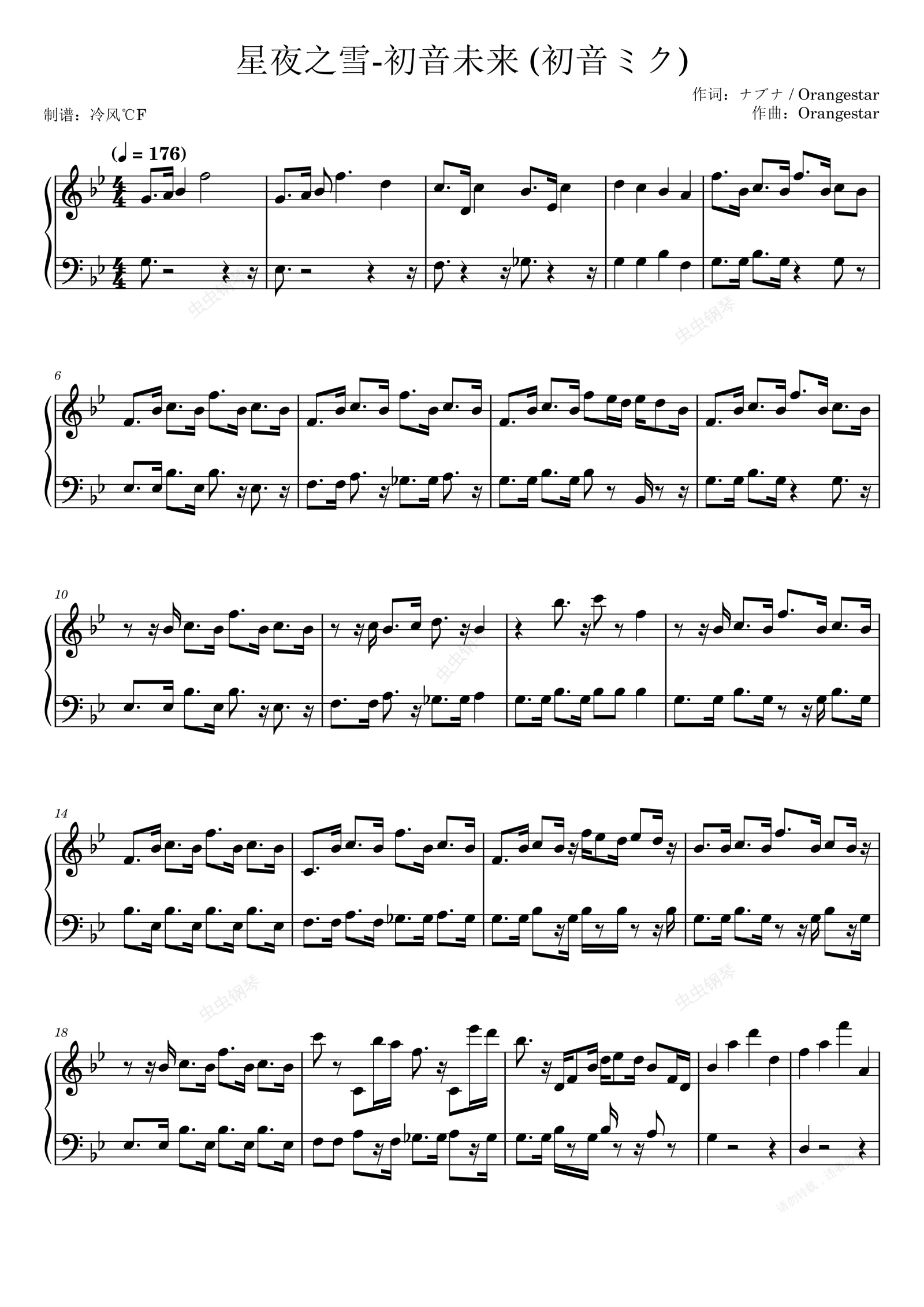 钢琴谱:星夜之雪-初音未来 (初音ミク)