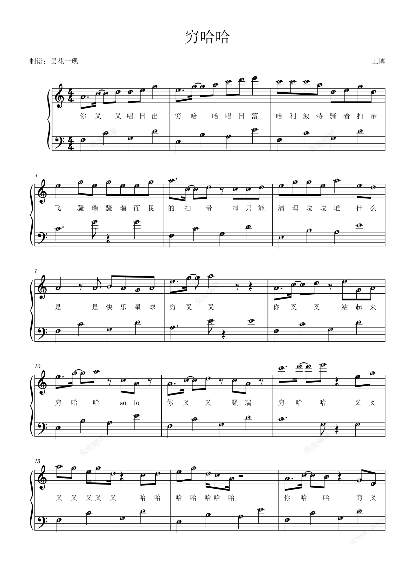 钢琴谱:穷哈哈 C大调1级程度(带音高名)