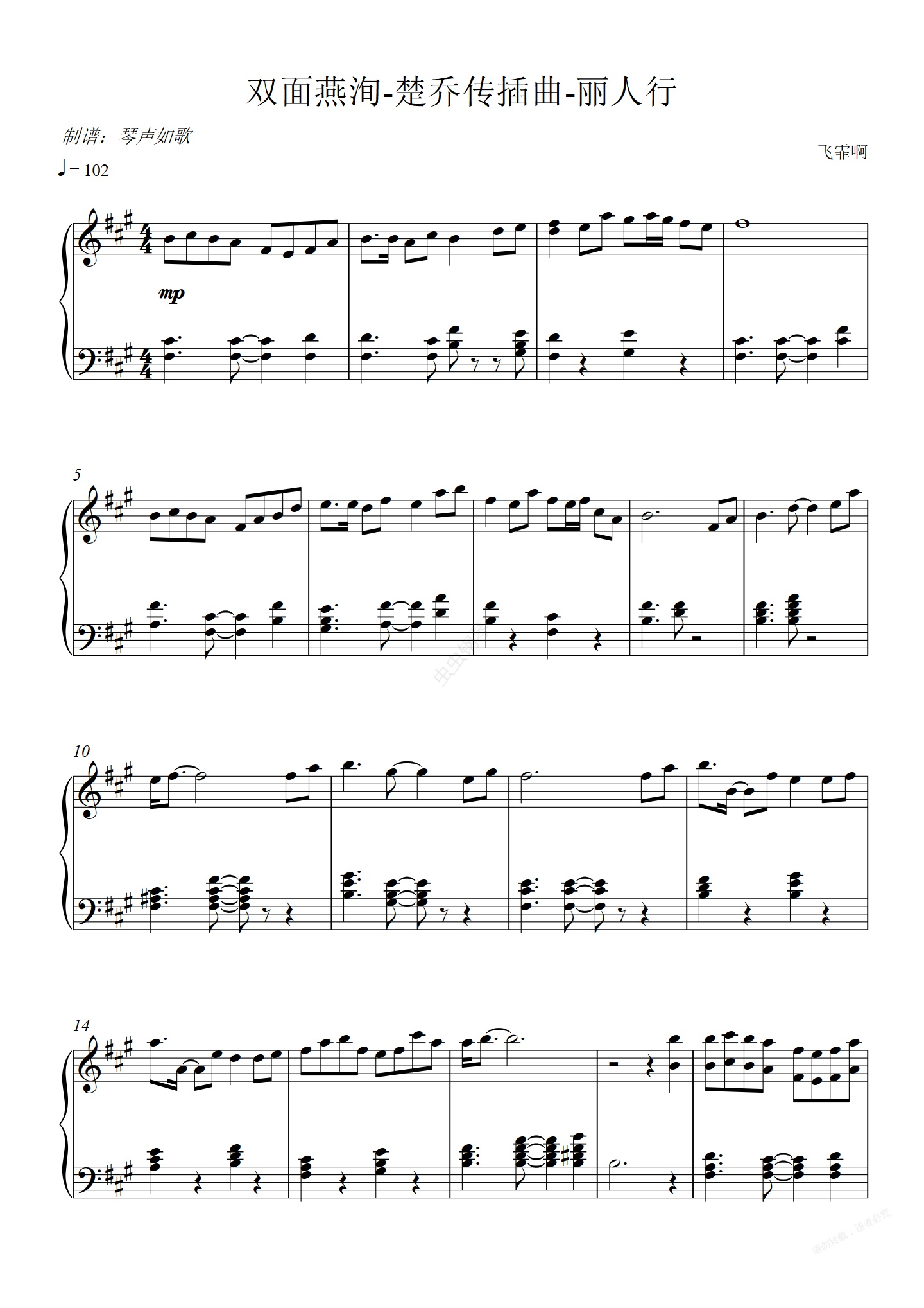 钢琴谱:双面燕洵-楚乔传插曲-丽人行