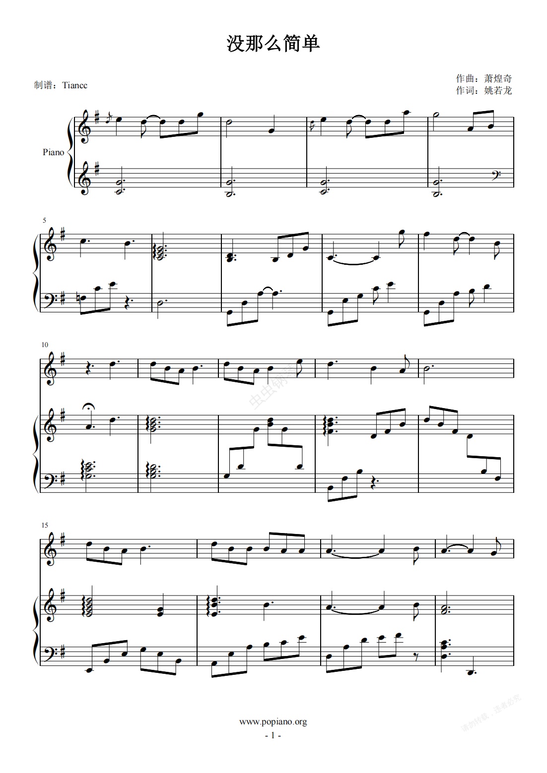钢琴谱:《没那么简单》弹唱谱,其实挺简单又好听,599+难度