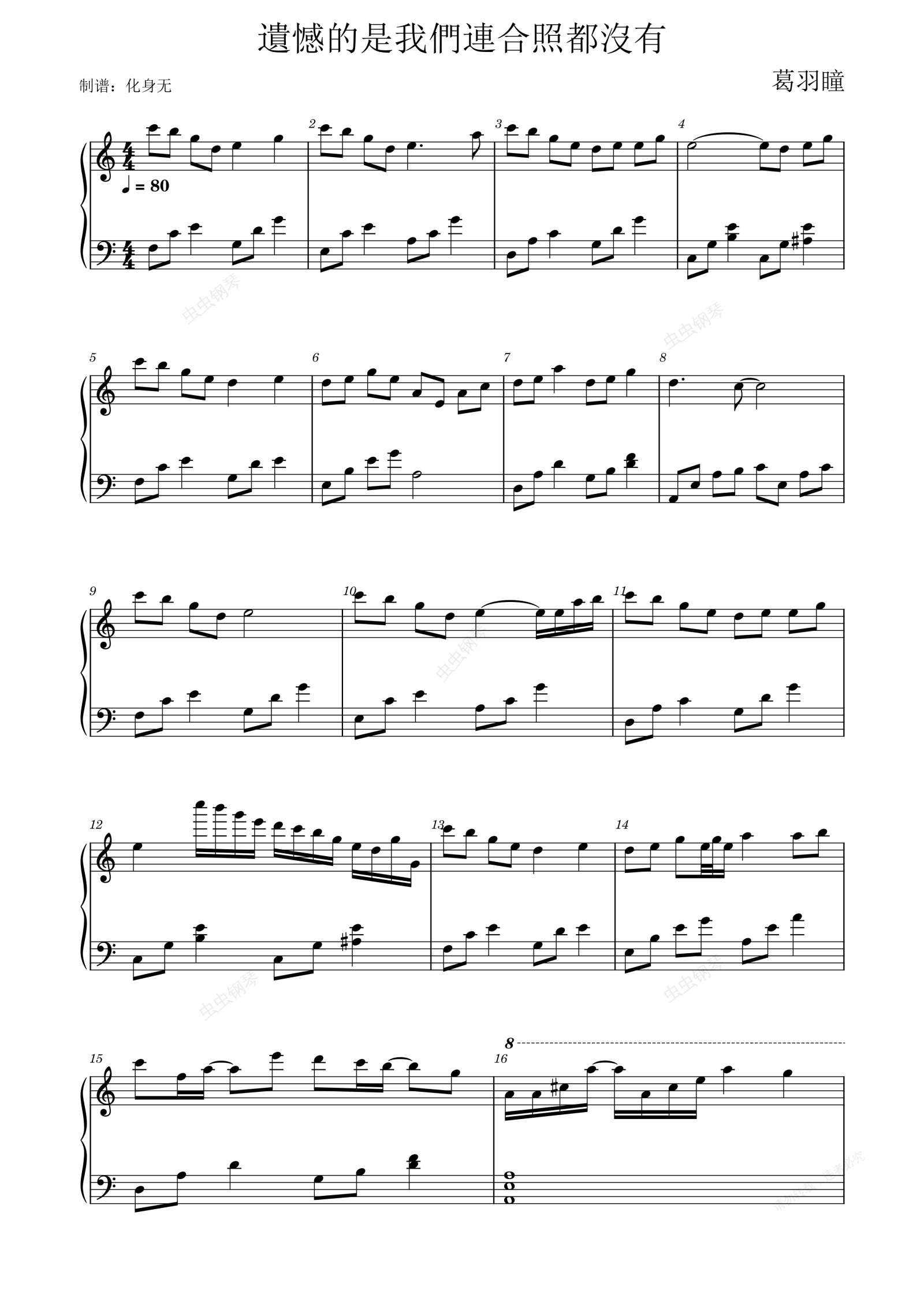 钢琴谱:遺憾的是我們連合照都沒有 / 遗憾的是我们连合照都没有