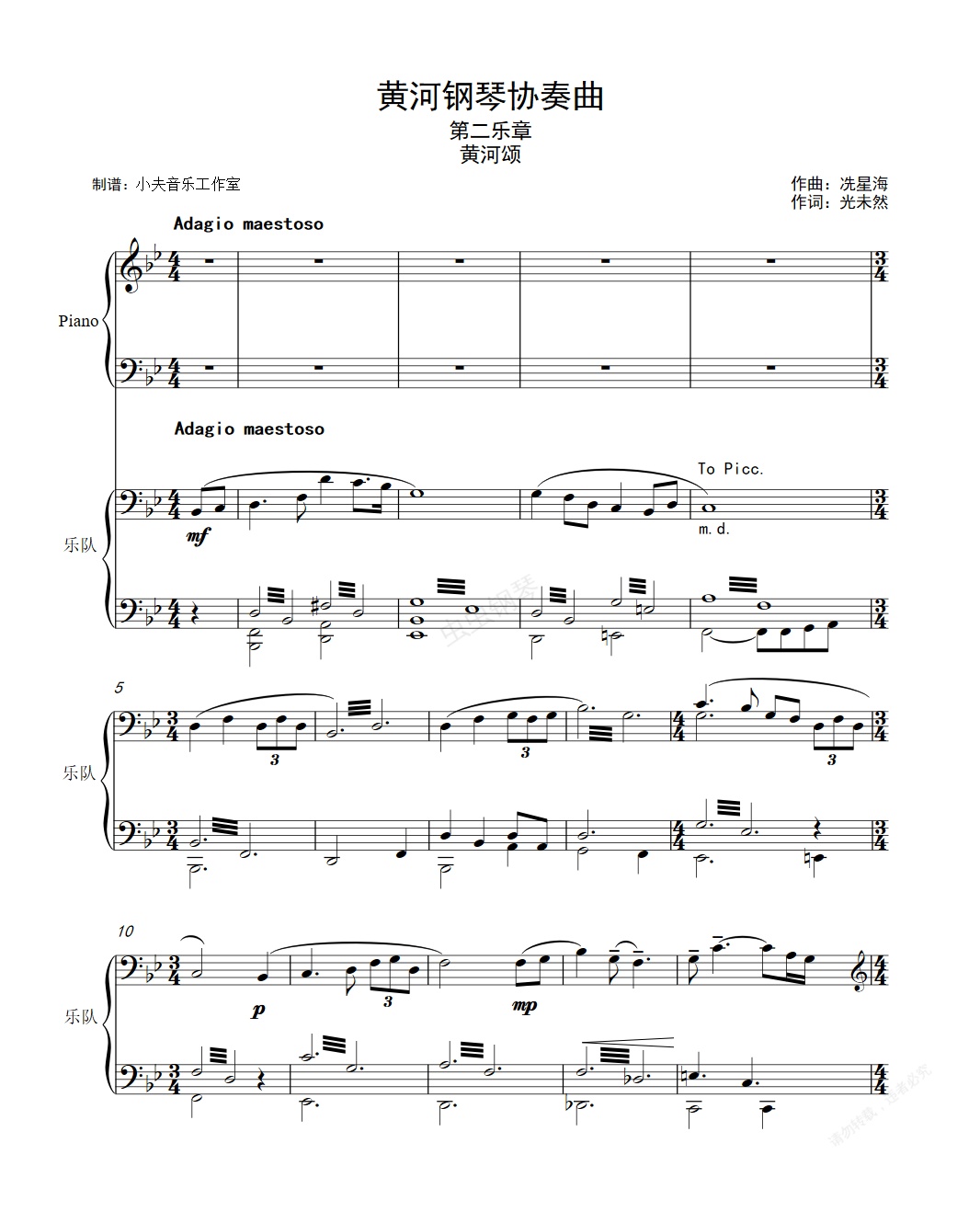 钢琴谱:黄河钢琴协奏曲-黄河颂