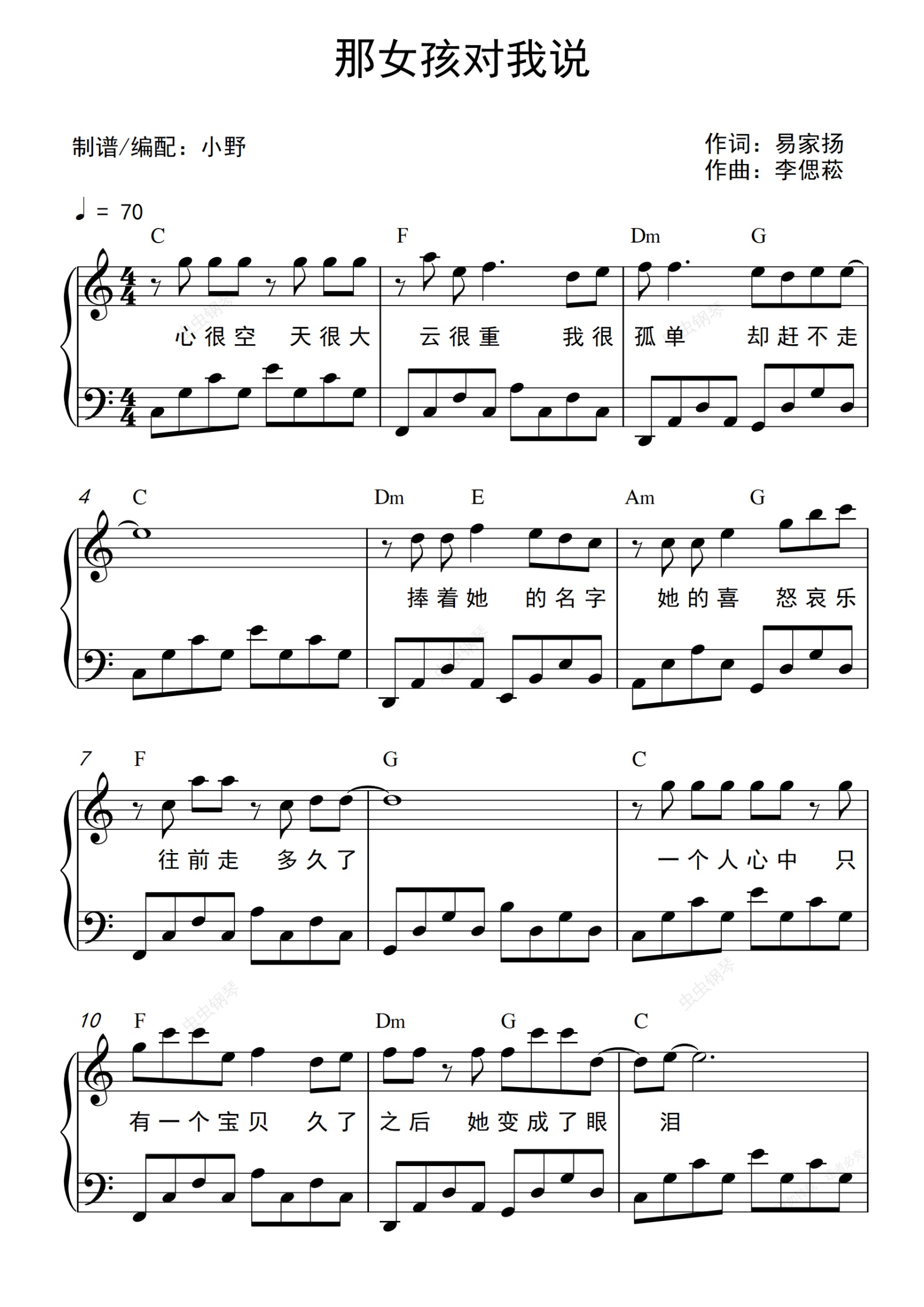 钢琴谱:那女孩对我说