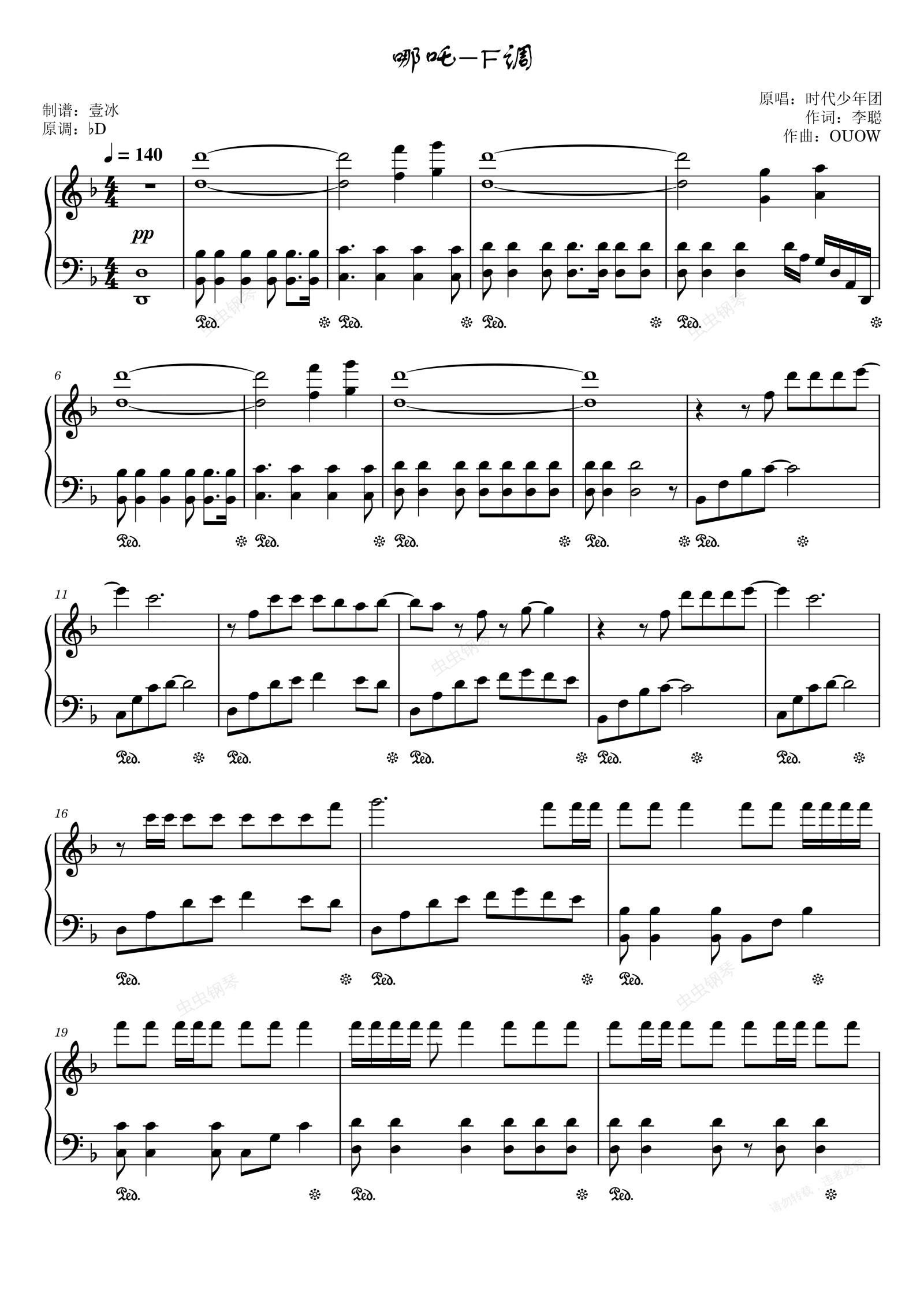 钢琴谱:哪吒//时代少年团-F调 降号少 简单易上手