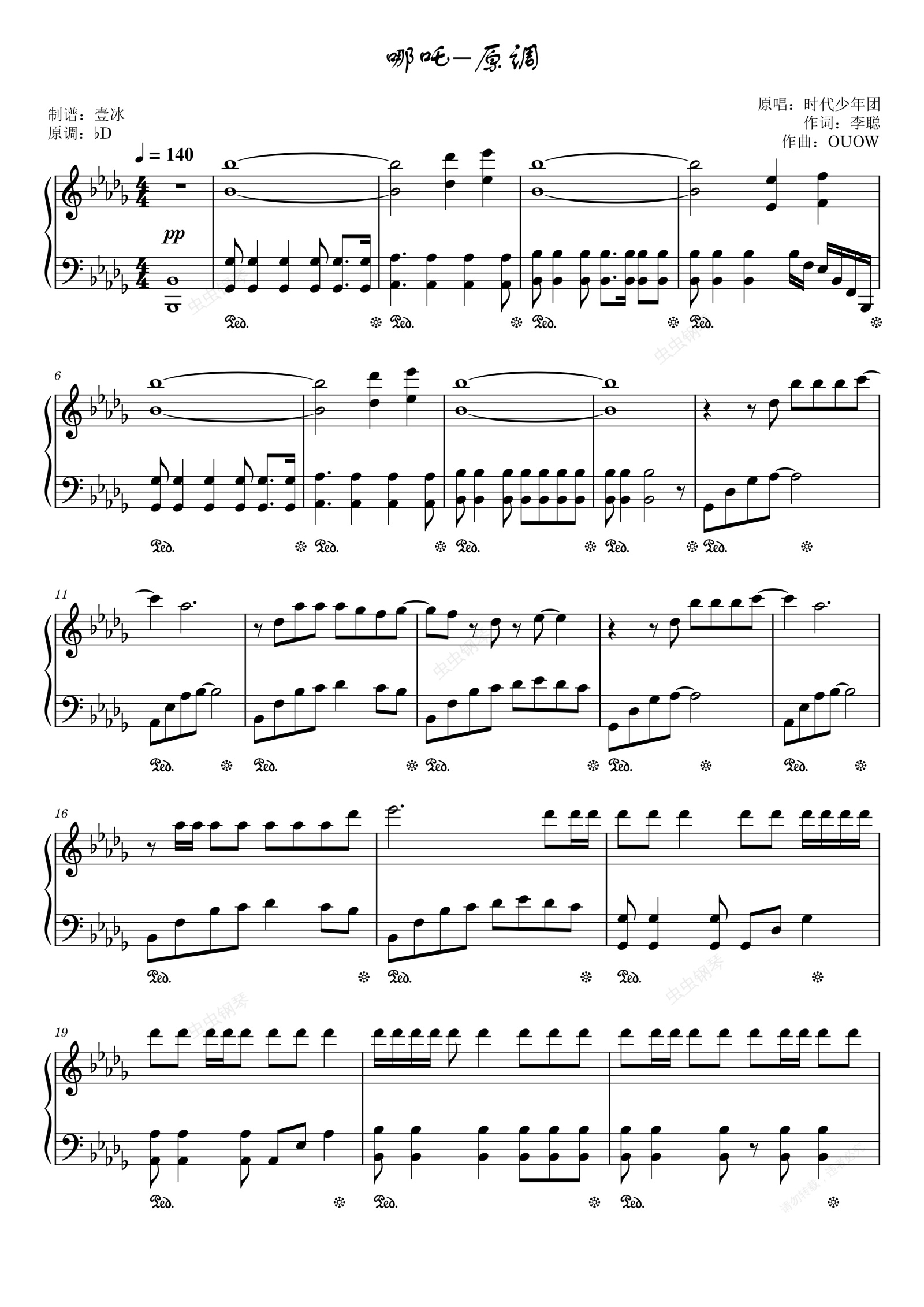 钢琴谱:哪吒//时代少年团-原调 简单易上手