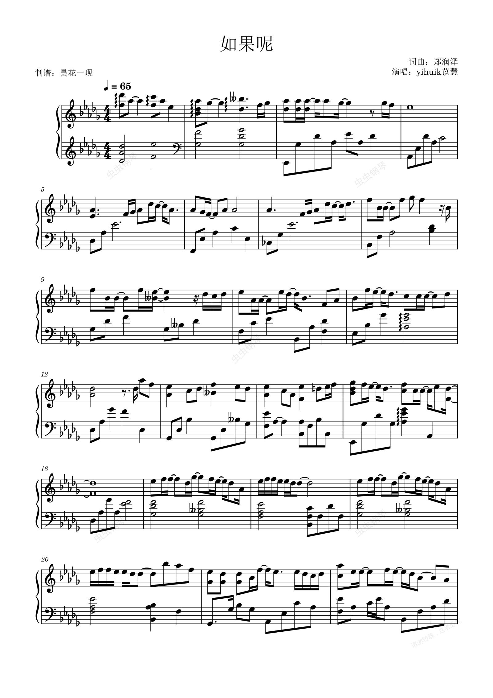 钢琴谱:如果呢 yihuik苡慧版本,原调