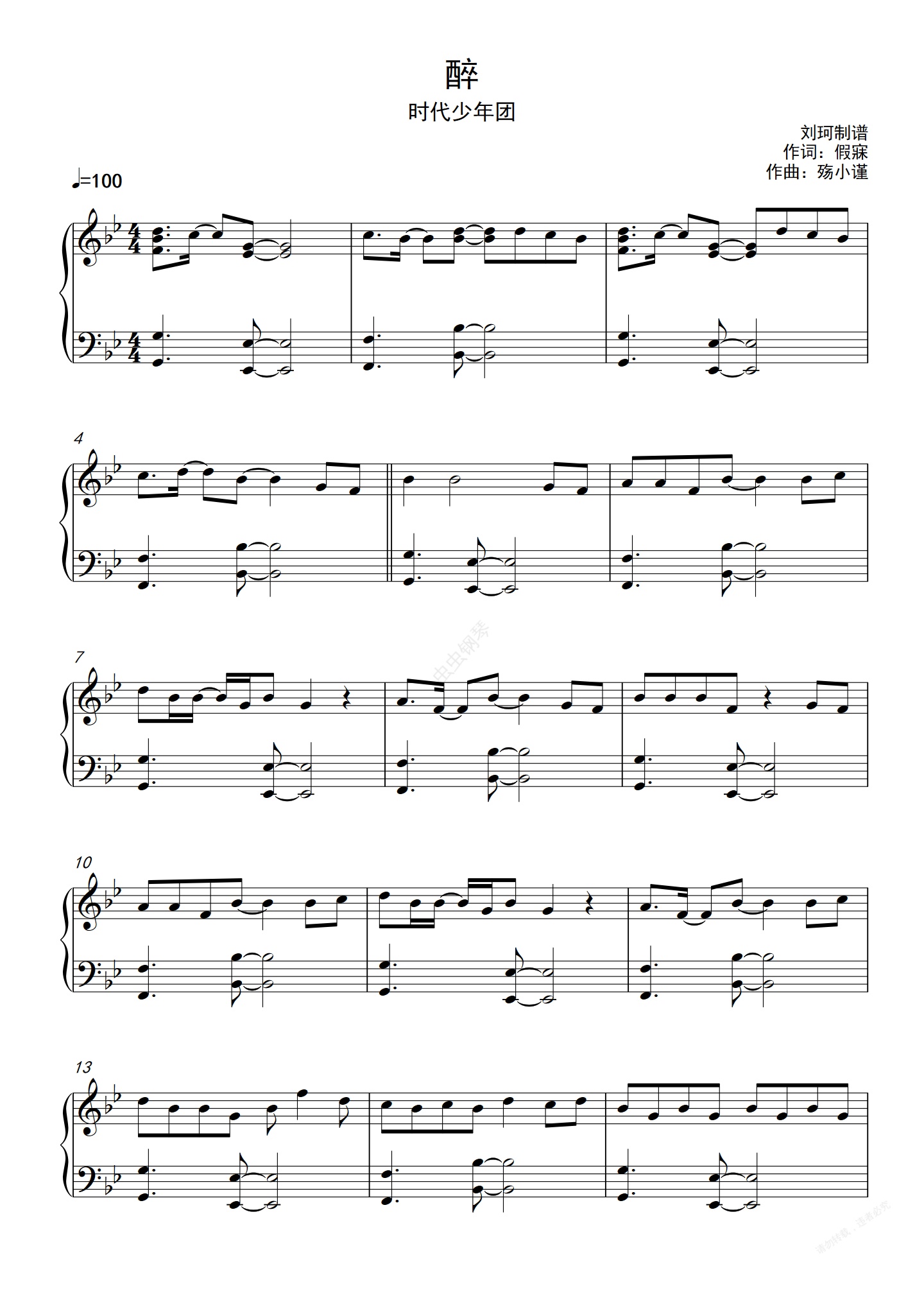 钢琴谱:醉 时代少年团