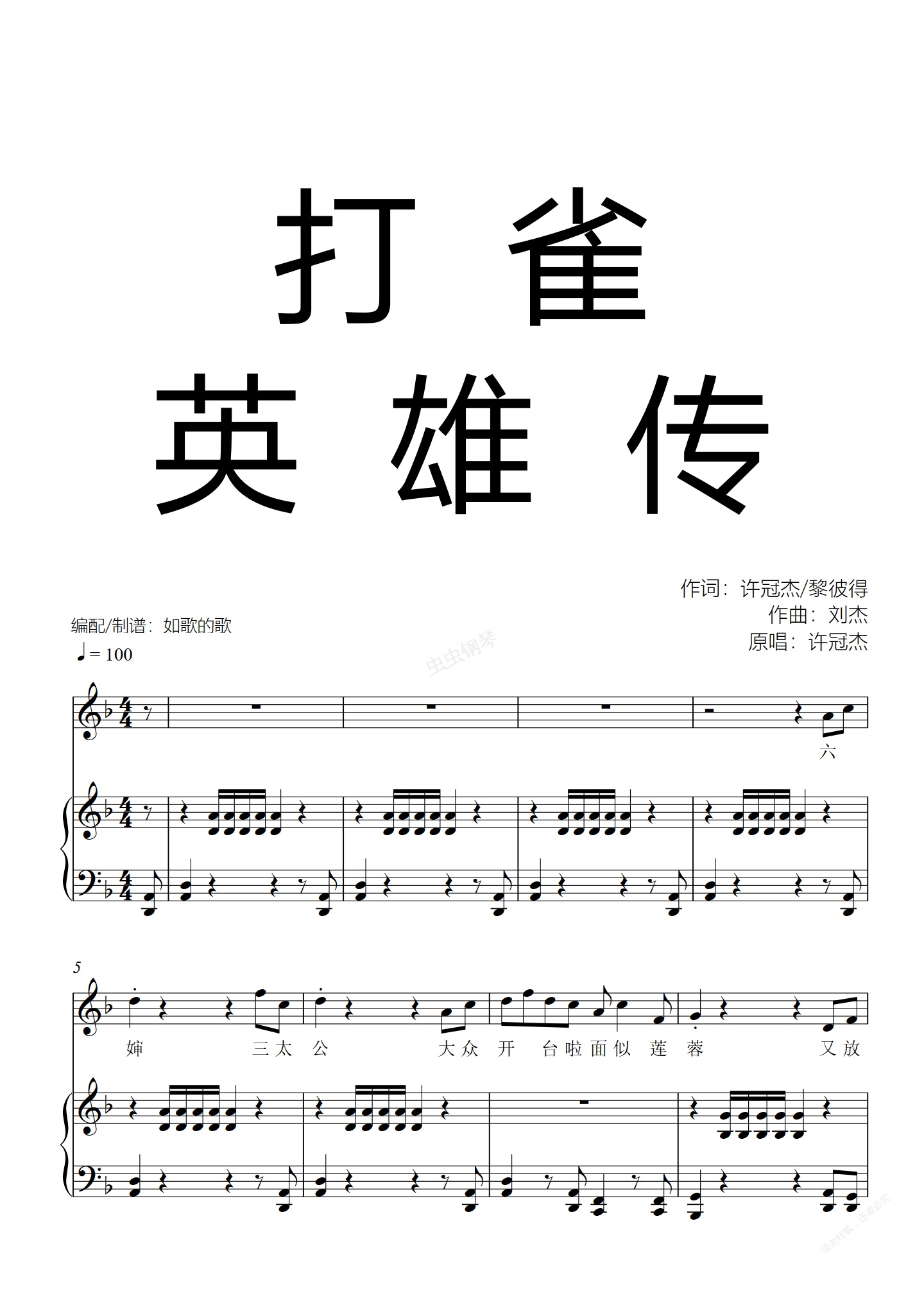 钢琴谱:打雀英雄传-国粹神曲(旋律&钢伴)