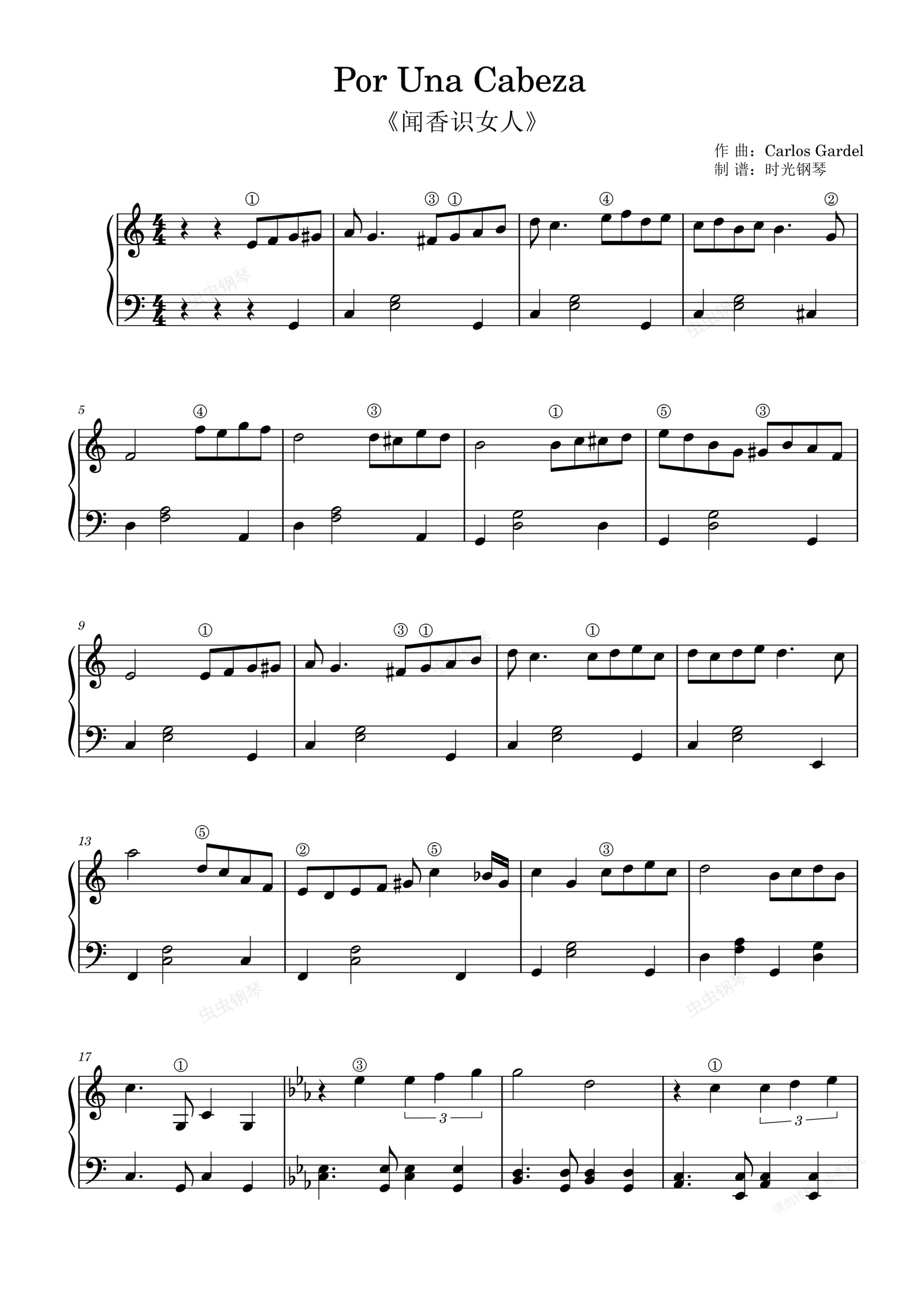 钢琴谱:Por Una Cabeza《闻香识女人》