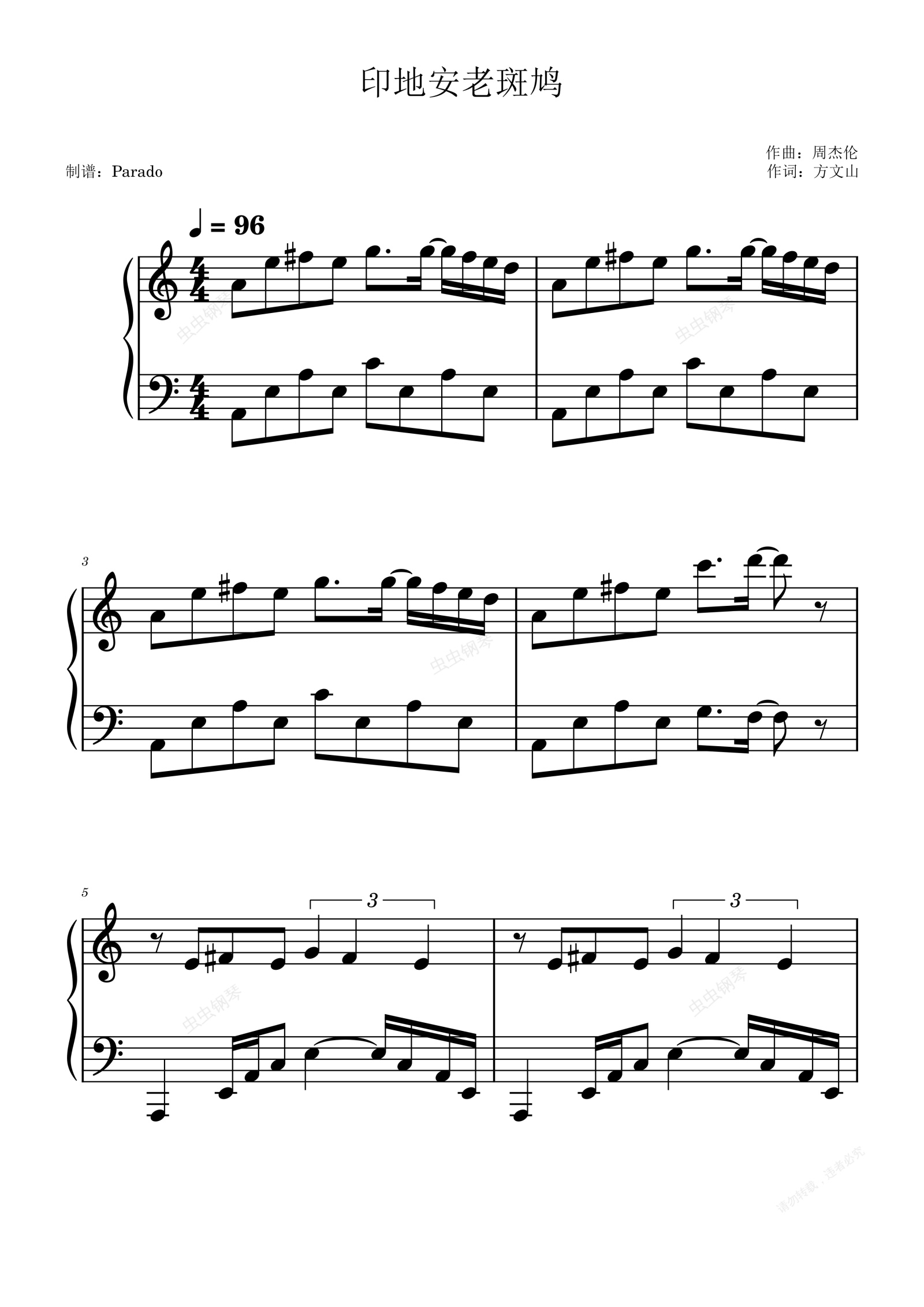钢琴谱:印地安老斑鸠-周杰伦-C调简单版-好听又好弹