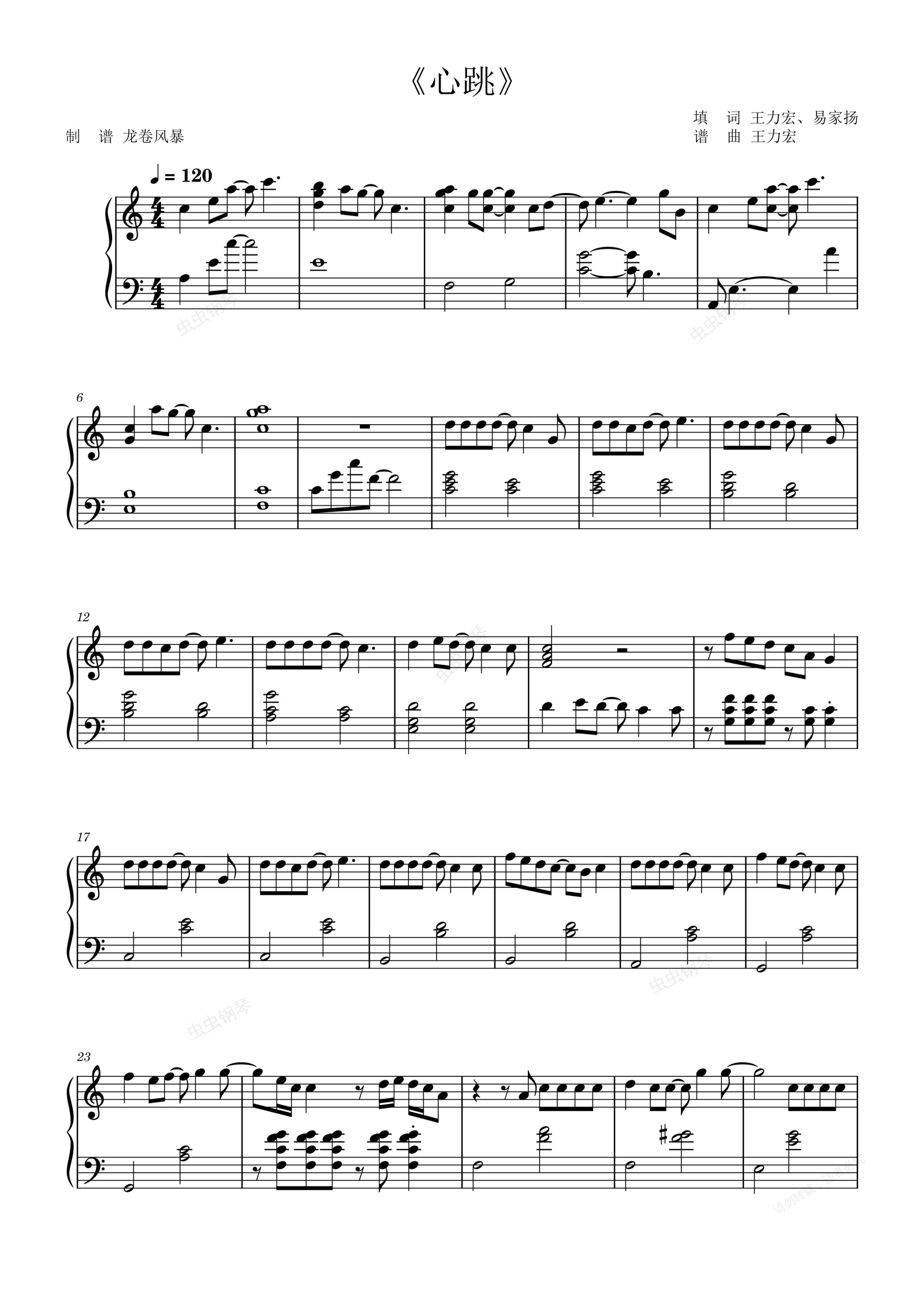 钢琴谱:《心跳》王力宏(C调唯美版)