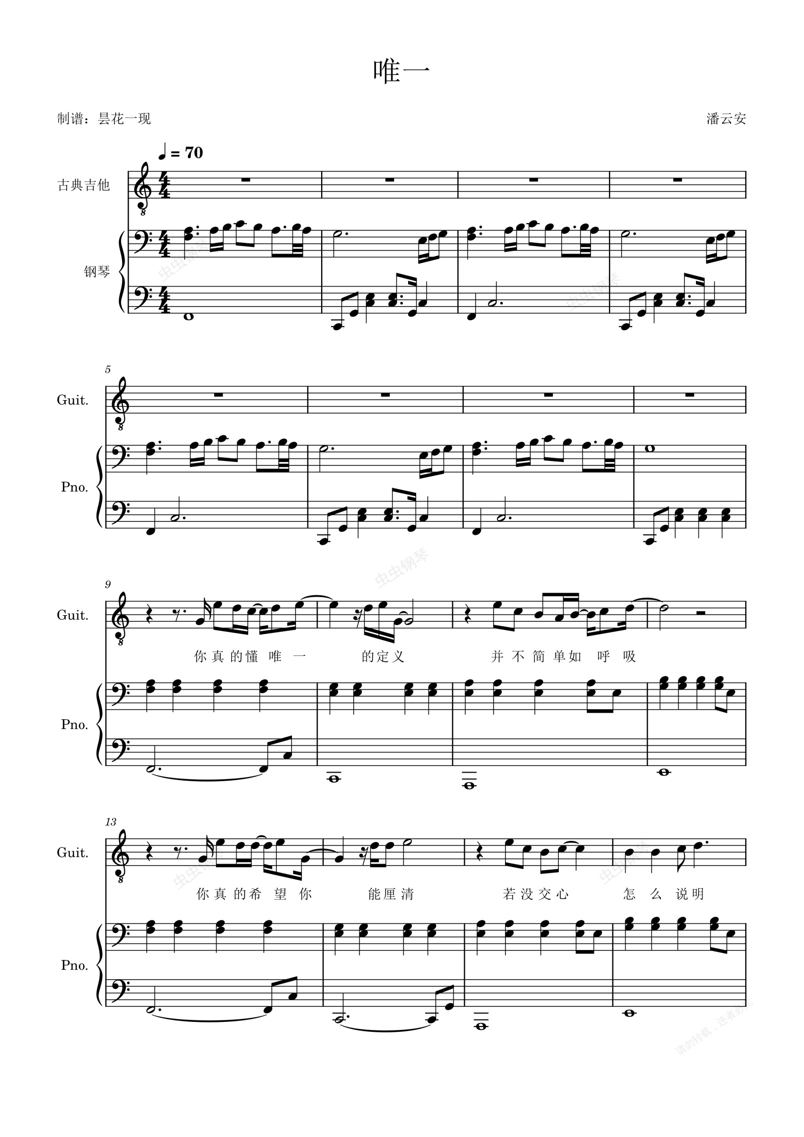 钢琴谱:唯一 告吾人 C调弹唱谱