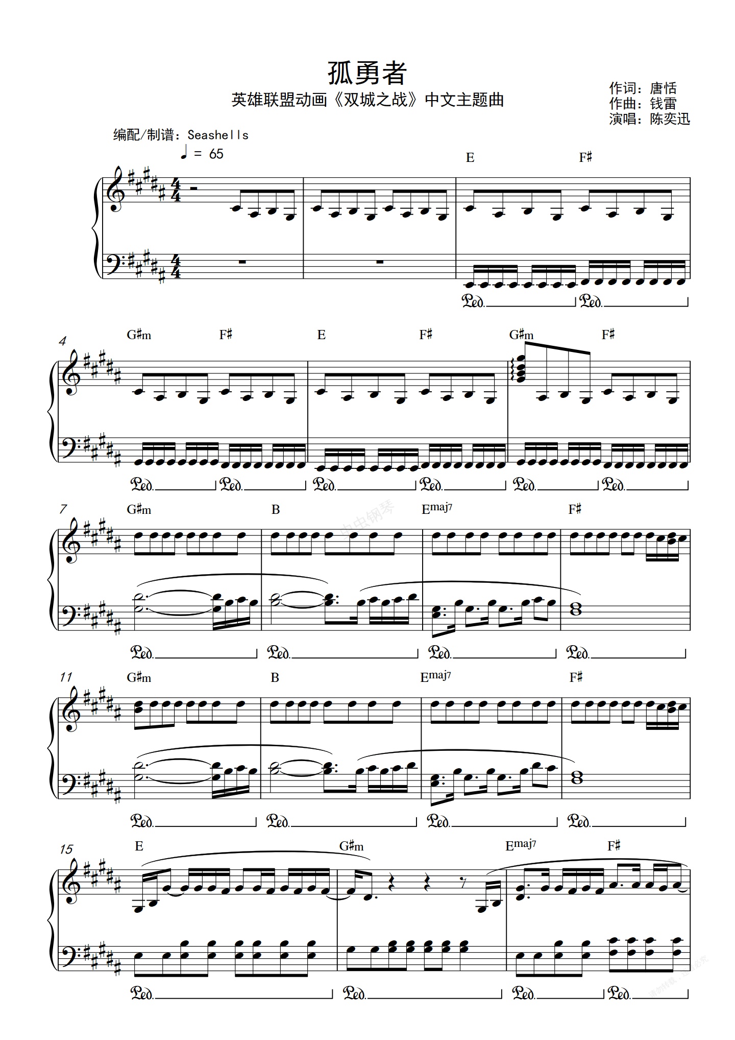 钢琴谱:陈奕迅-《孤勇者》B调 {英雄联盟:双城之战}中文主题曲