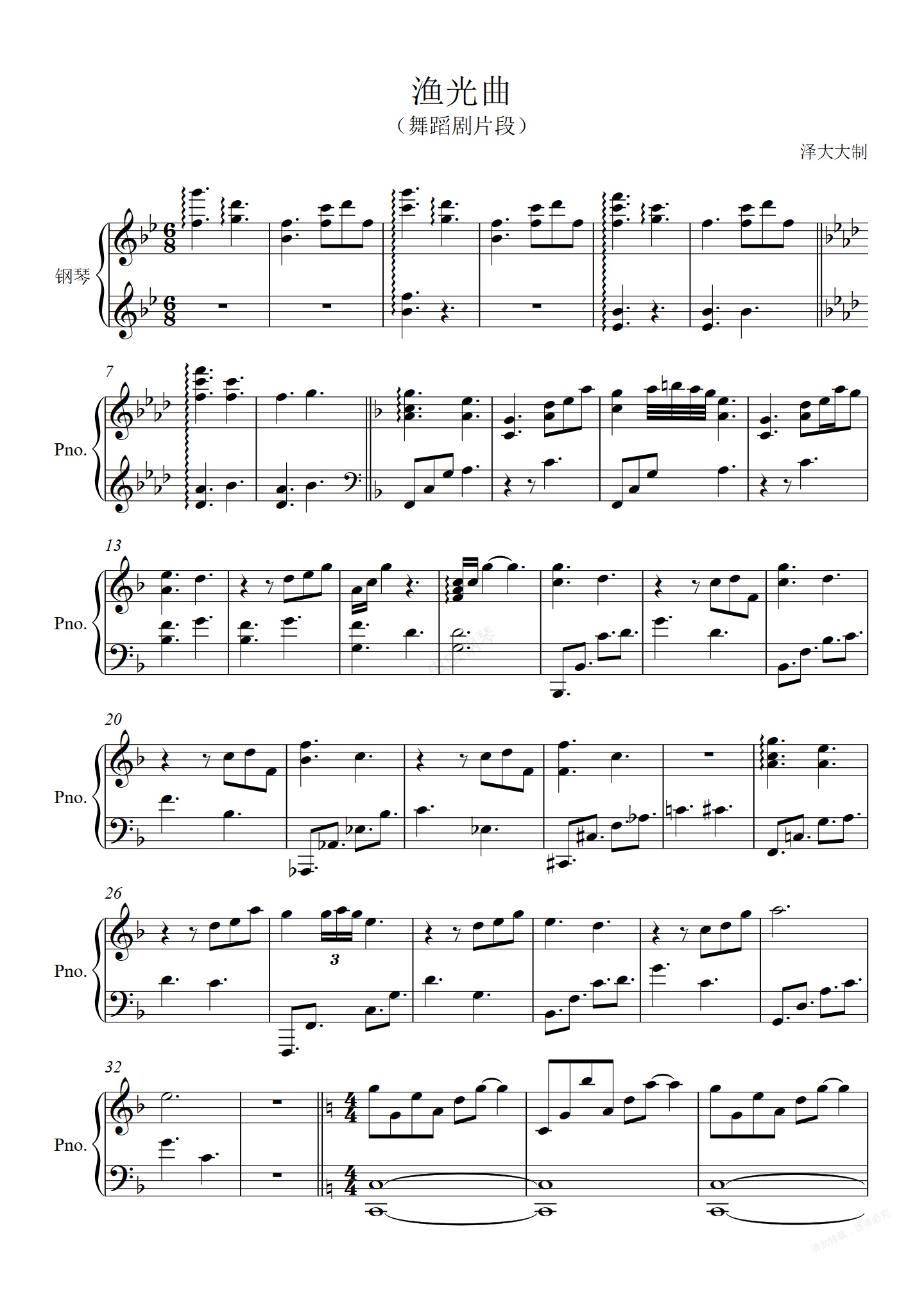 钢琴谱:渔光曲【舞蹈剧钢琴背景】泽大大