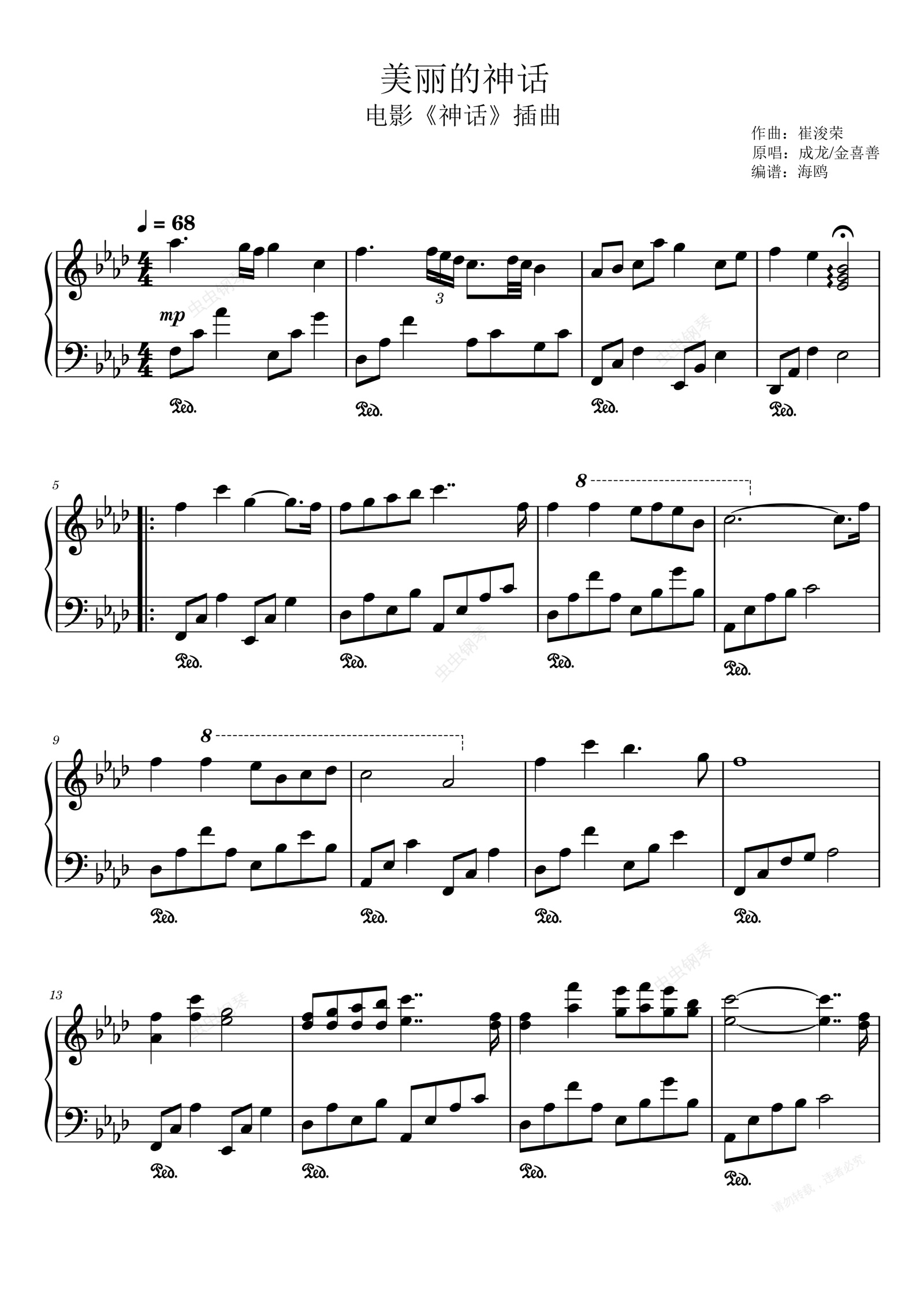 钢琴谱:美丽的神话 电影《神话》插曲 成龙 Endless Love