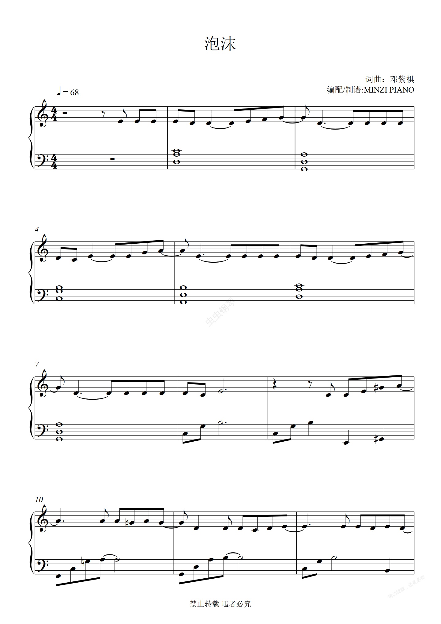 钢琴谱:好听易弹《泡沫》邓紫棋
