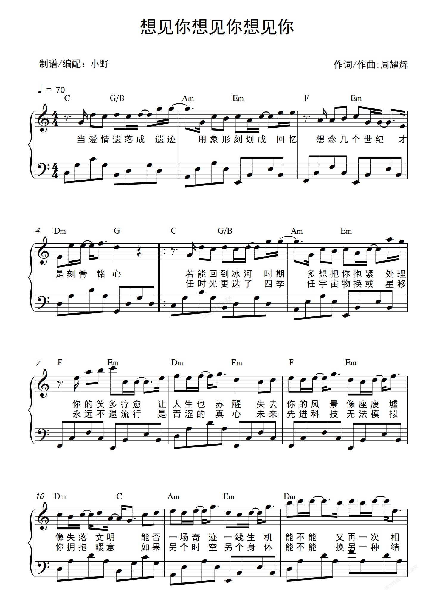 钢琴谱:想见你想见你想见你