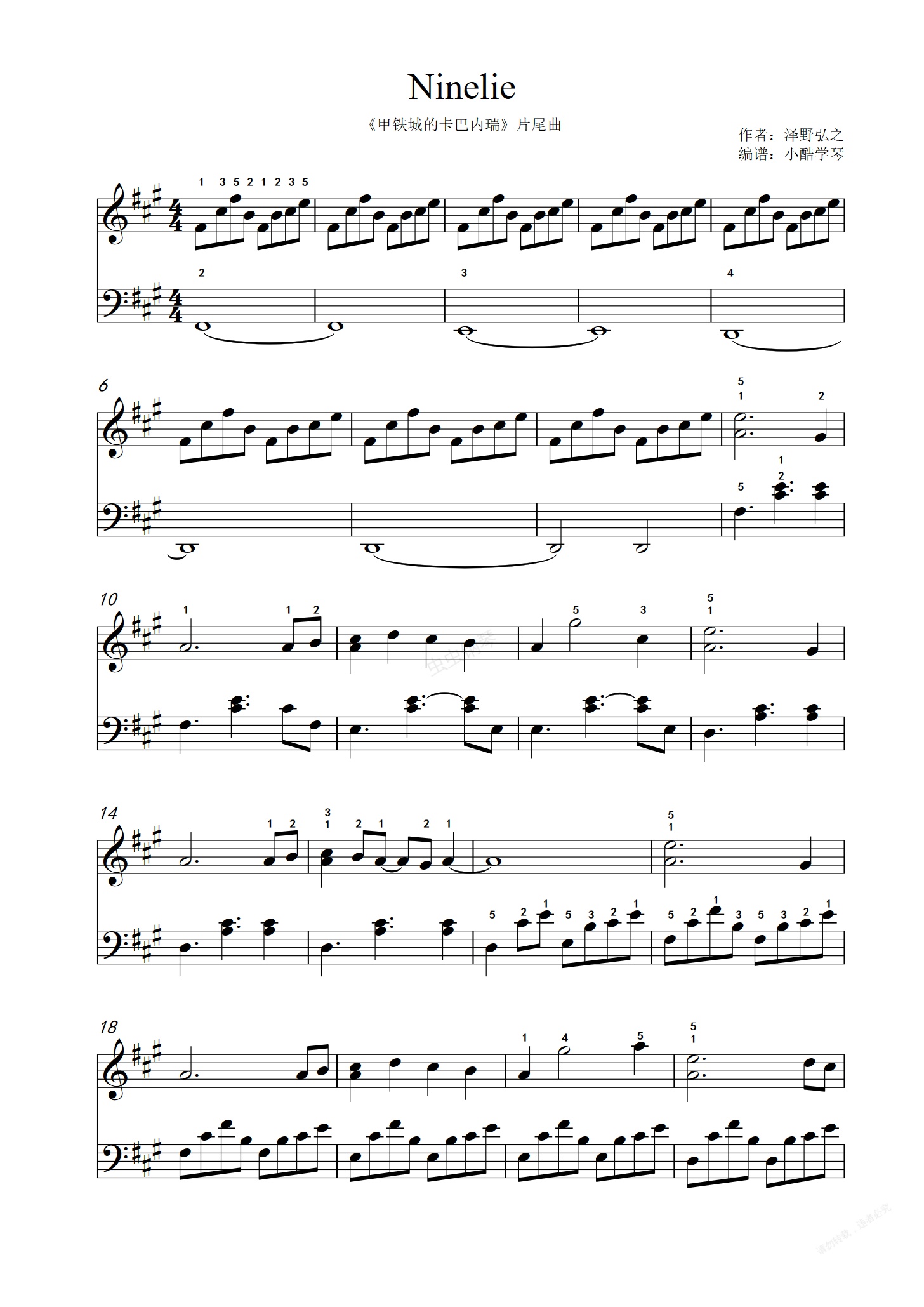 钢琴谱:《Ninelie》钢琴改编唯美版(带指法)——主页有演示视频