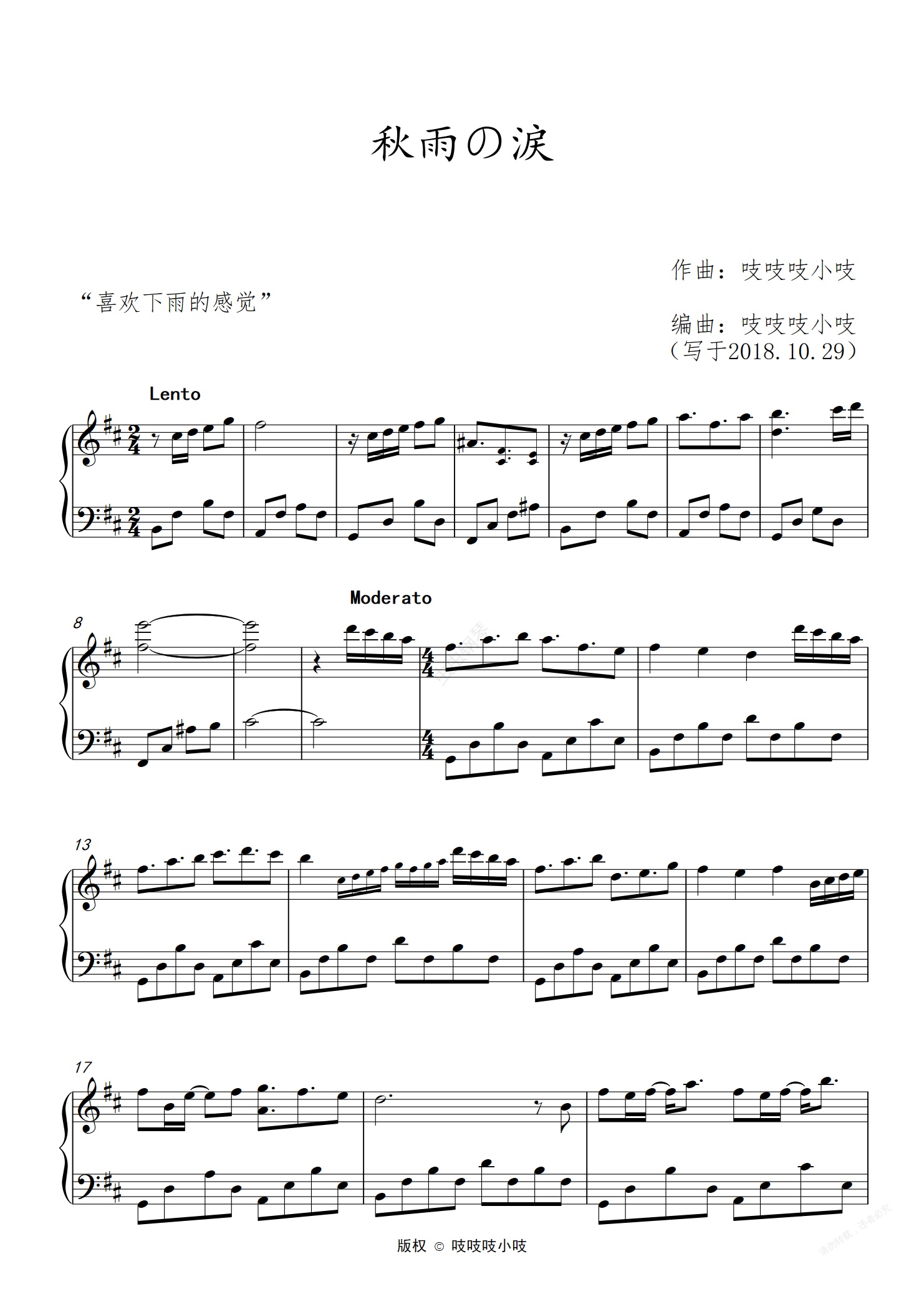 钢琴谱:秋雨の涙(原创)