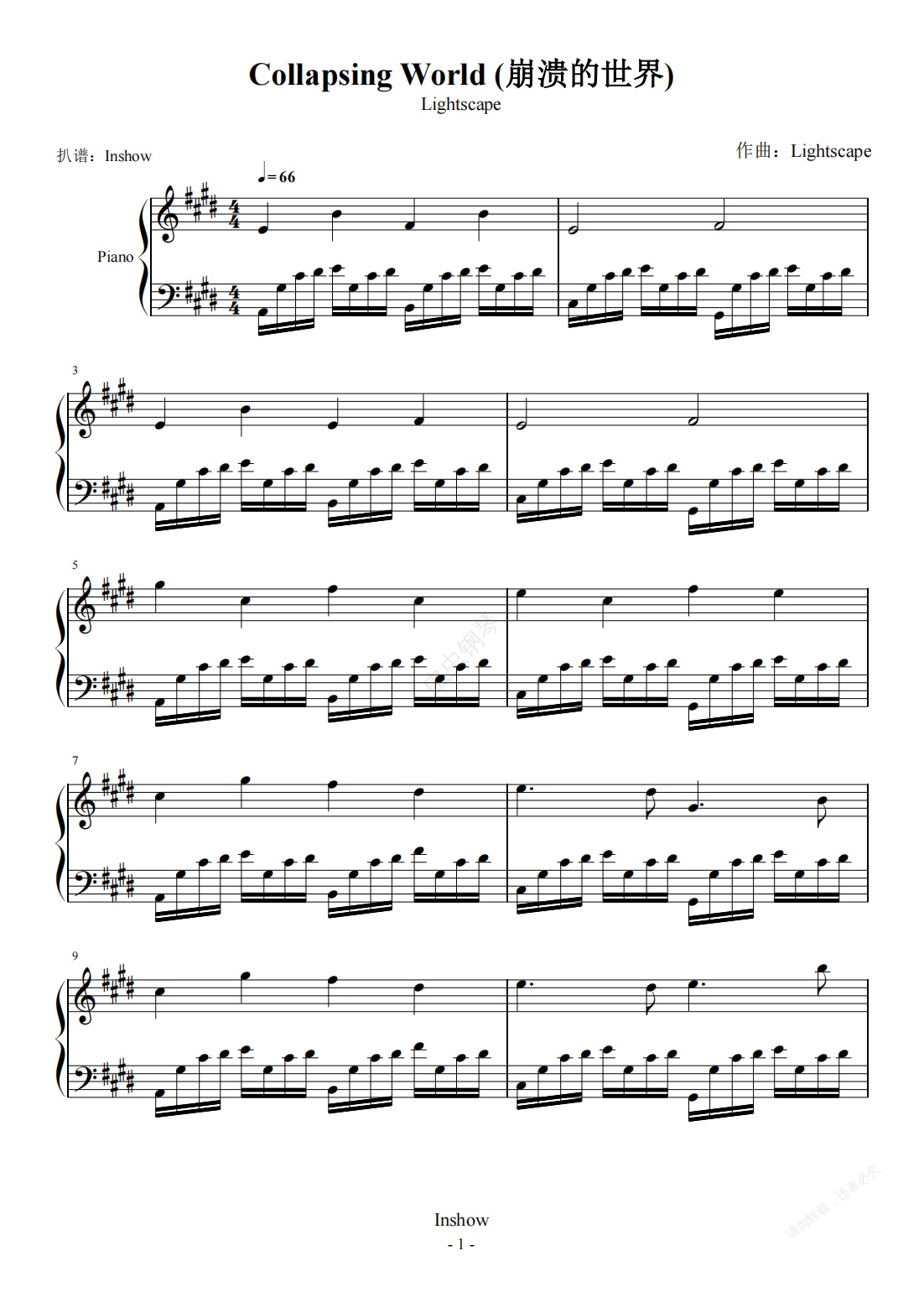 钢琴谱:Collapsing World【原调独奏】- Lightscape -