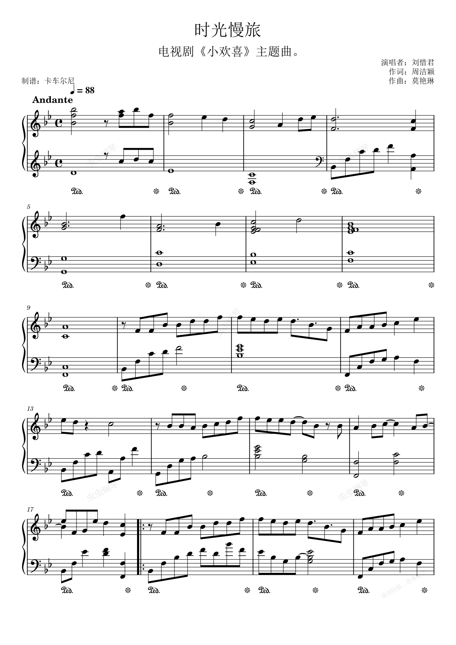 钢琴谱:时光慢旅 电视剧《小欢喜》主题曲