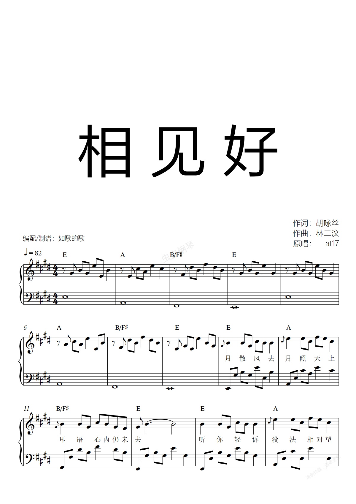 钢琴谱:相见好-可独奏&弹唱