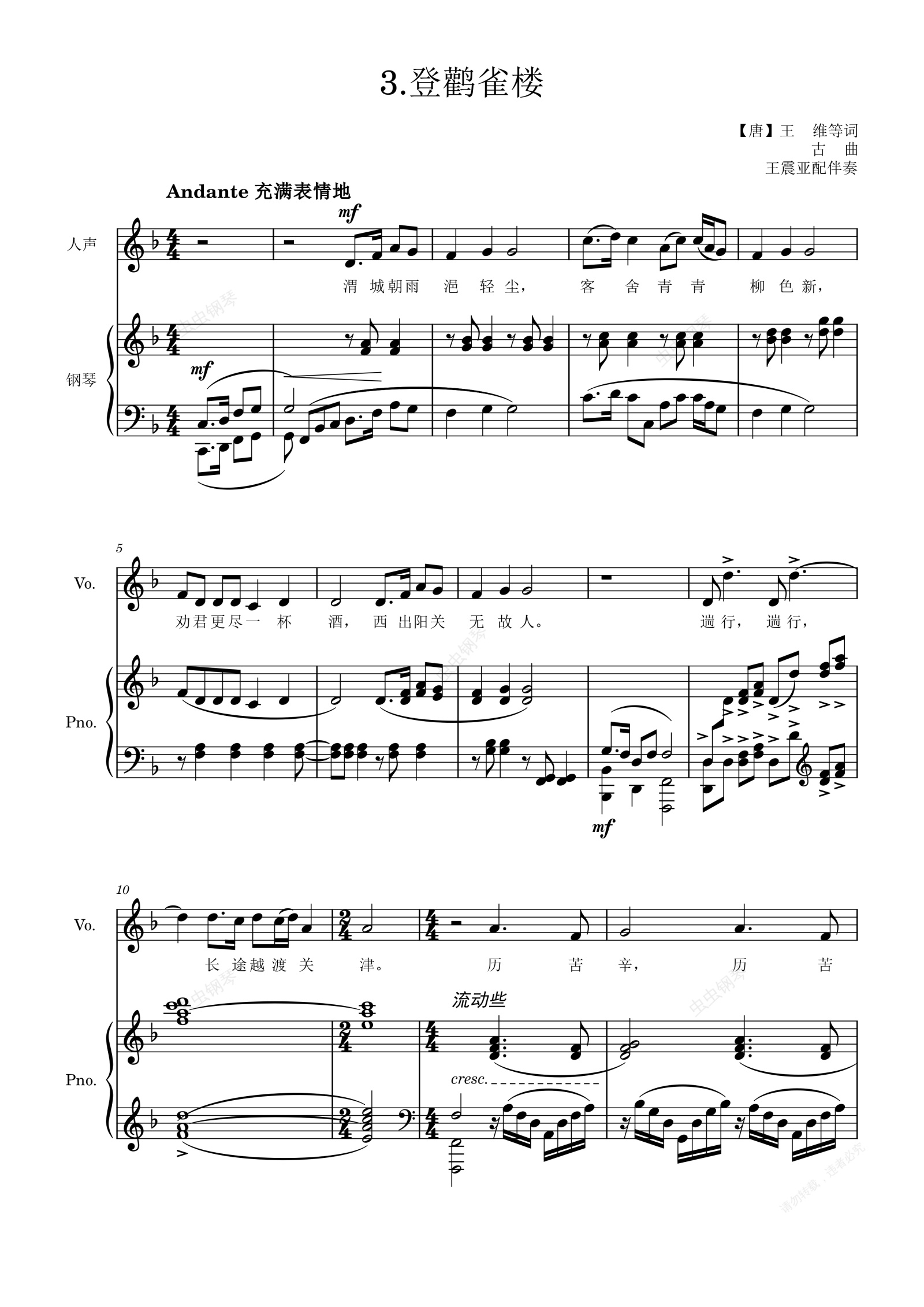 钢琴谱:登鹳雀楼【声乐伴奏谱】王维词 王震亚配伴奏