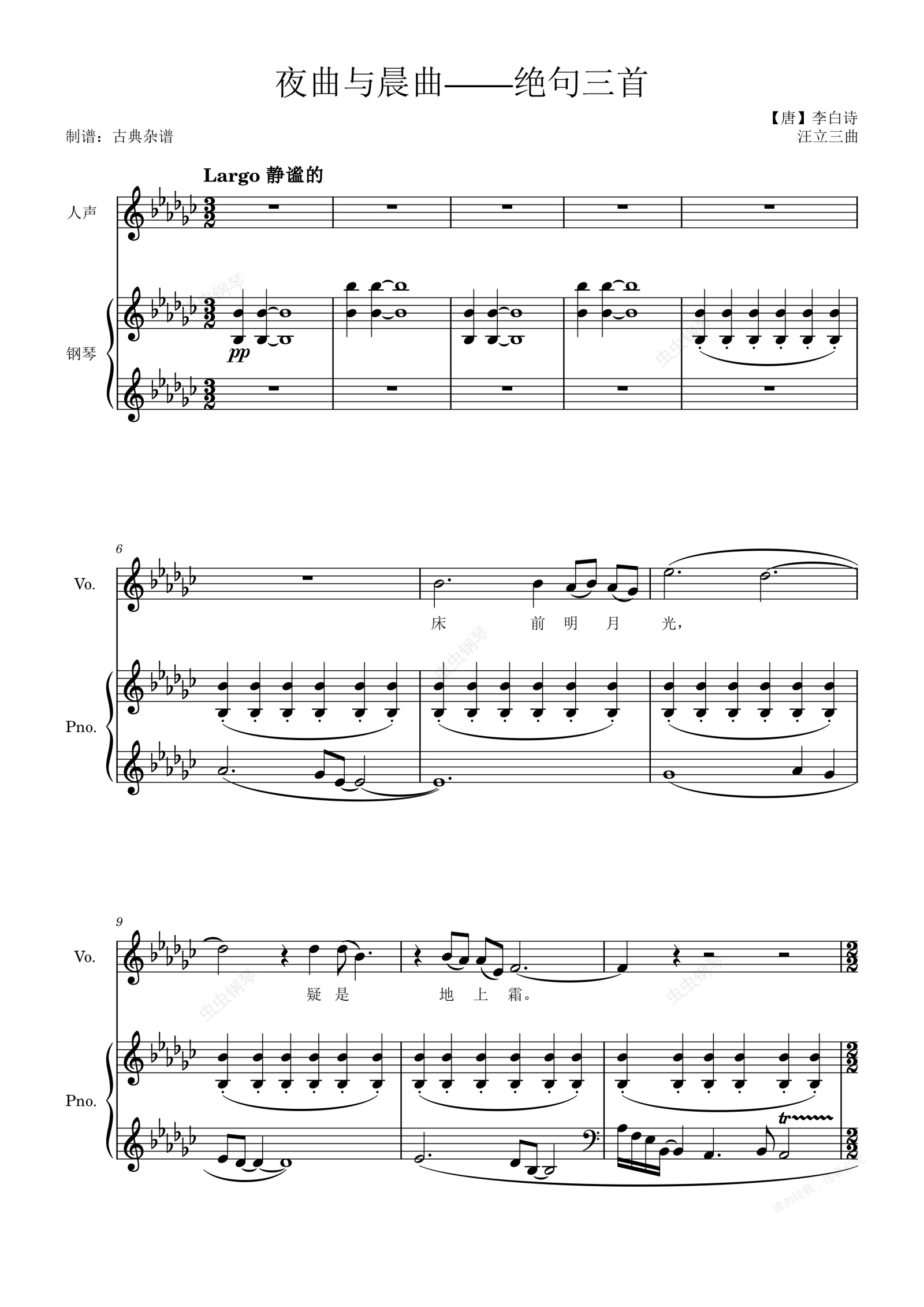 钢琴谱:夜曲与晨曲——绝句三首【声乐伴奏谱】