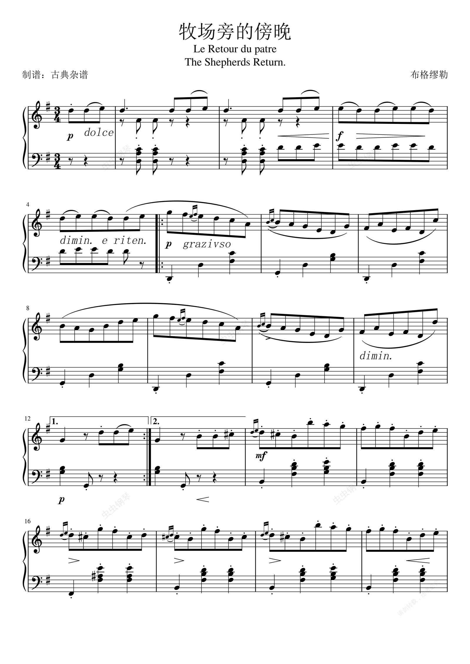 钢琴谱:牧场旁的傍晚 Op.109布格缪勒18首钢琴练习曲