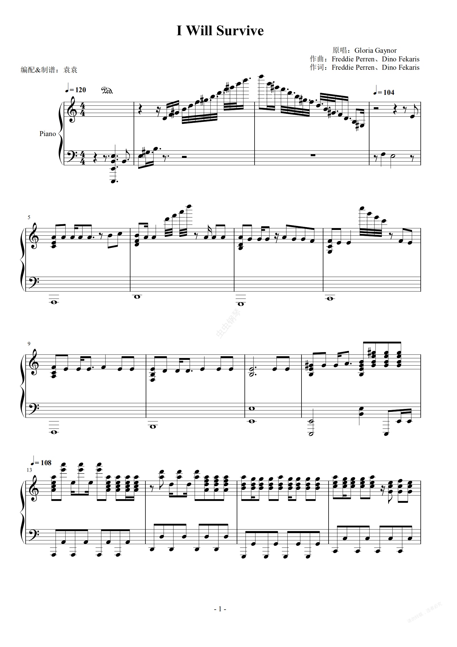 钢琴谱:I Will Survive 这不是斯巴达 电影主题曲