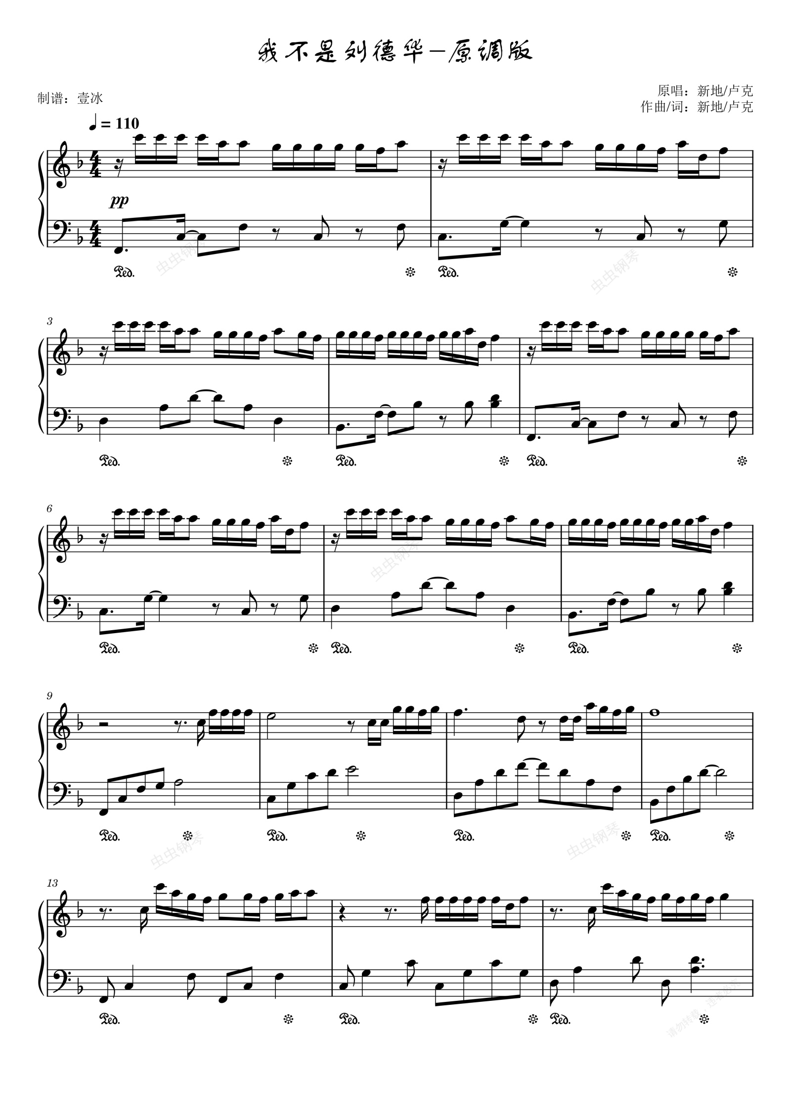钢琴谱:我不是刘德华//原调-简单 易上手