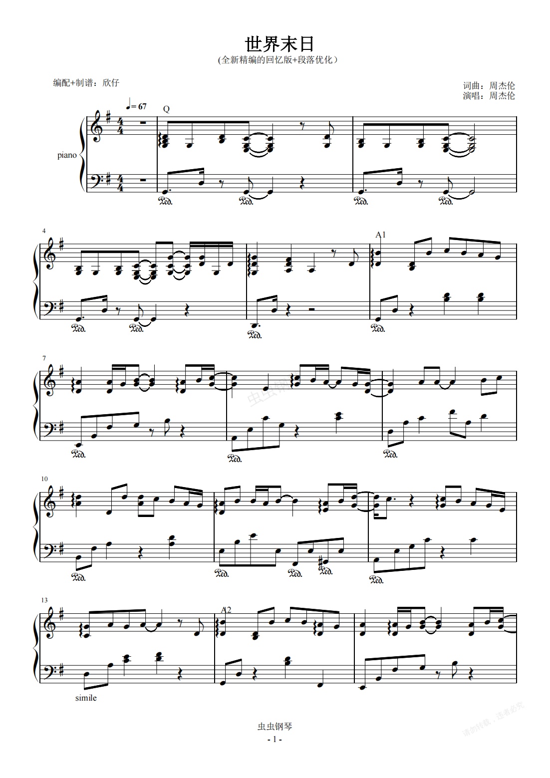 钢琴谱:周杰伦-G《世界末日》(精编回忆版+段落优化)