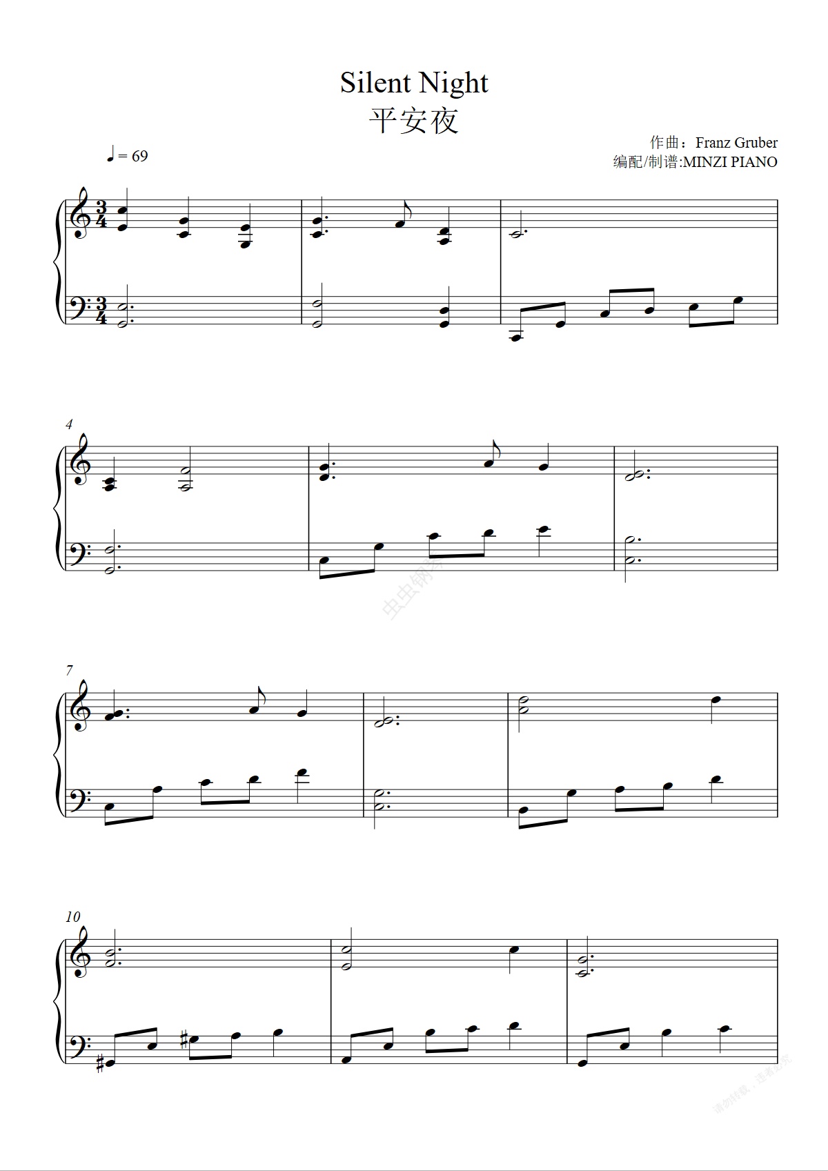 钢琴谱:圣诞歌曲《Silent Night》平安夜