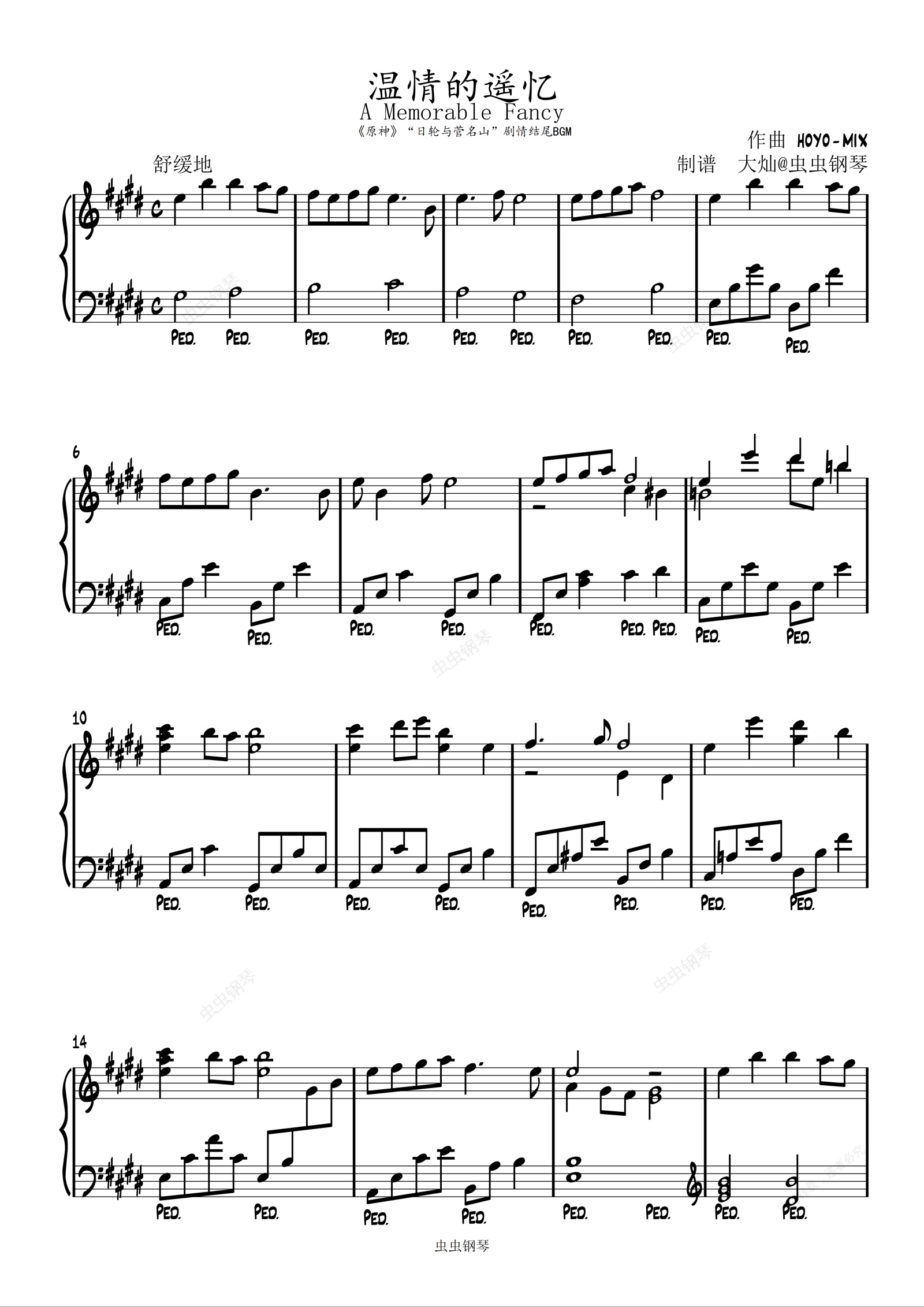 钢琴谱:《原神》A Memorable Fancy 温暖的遥忆-----“日轮与菅名山”剧情最后动画BGM