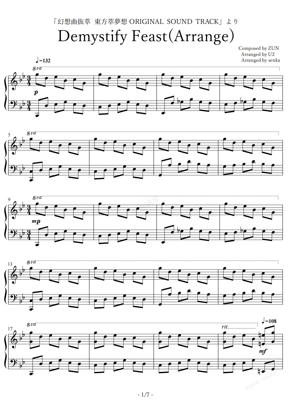钢琴谱:【东方萃梦想】Demystify Feast(Arrange ver.)