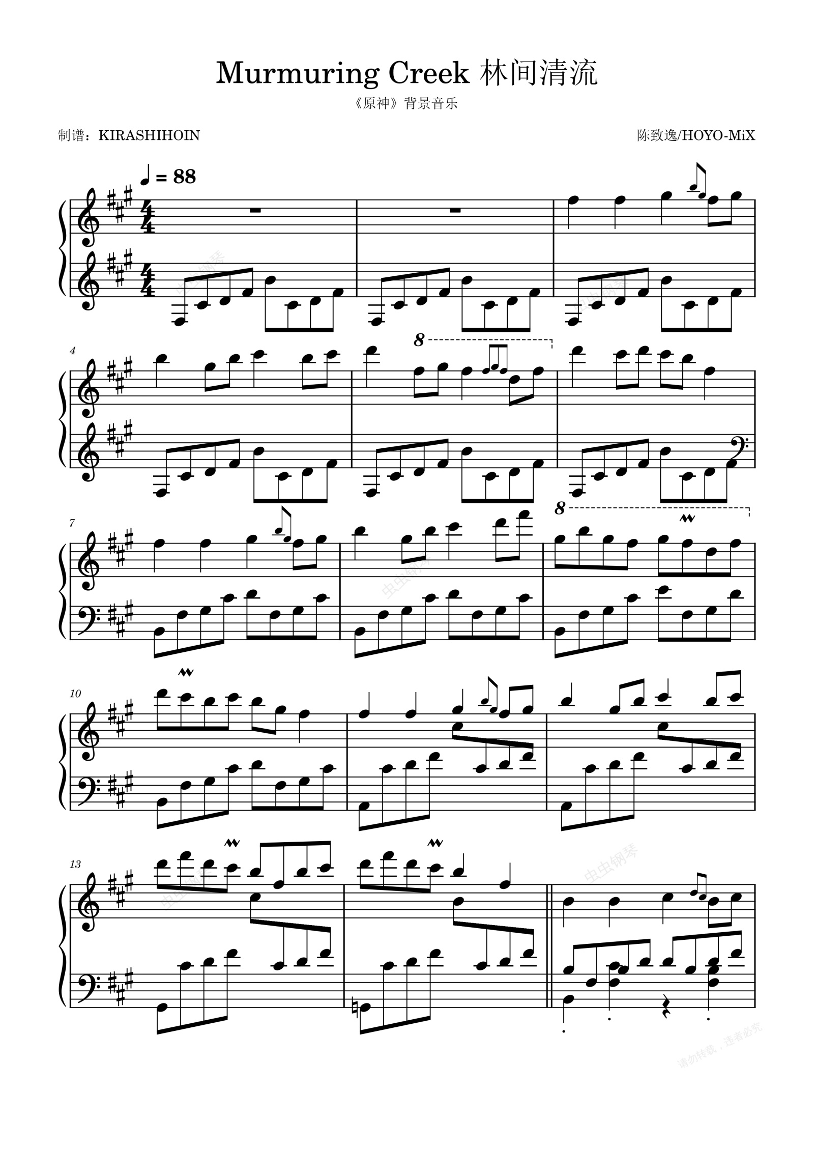 钢琴谱:Murmuring Creek 林间清流(《原神》背景音乐)- 陈致逸