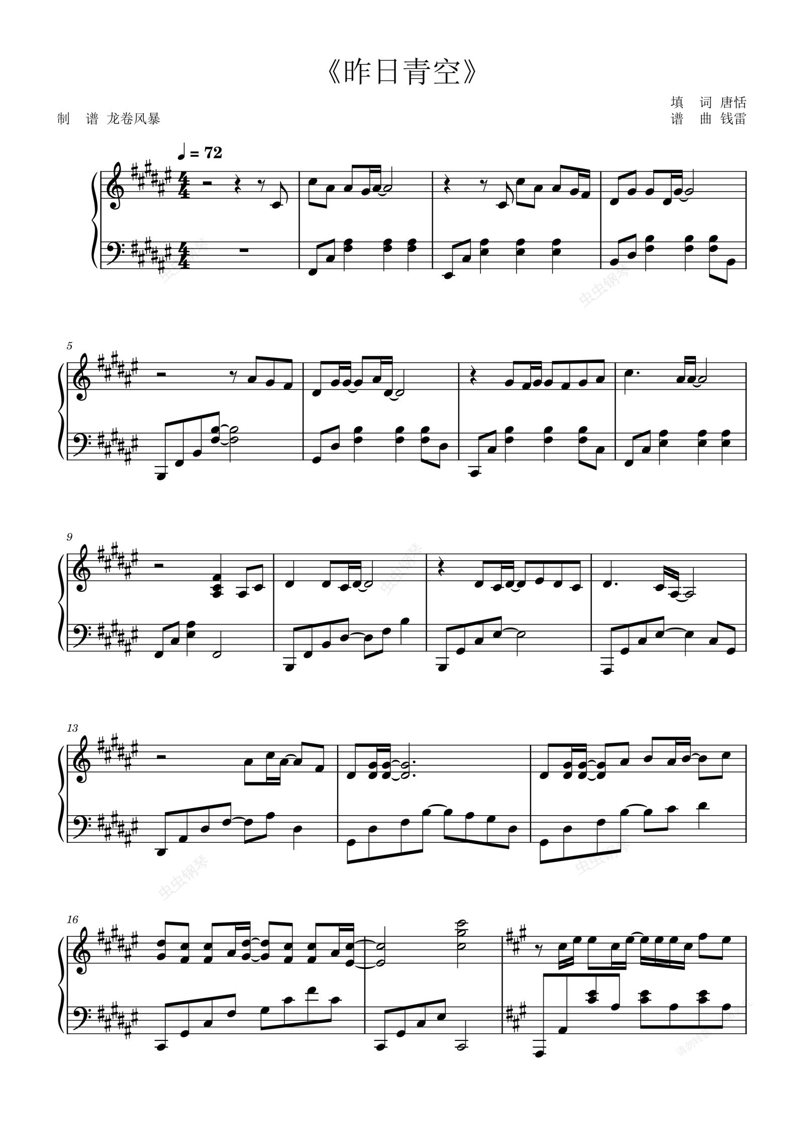 钢琴谱:《昨日青空》尤长靖(超唯美版)