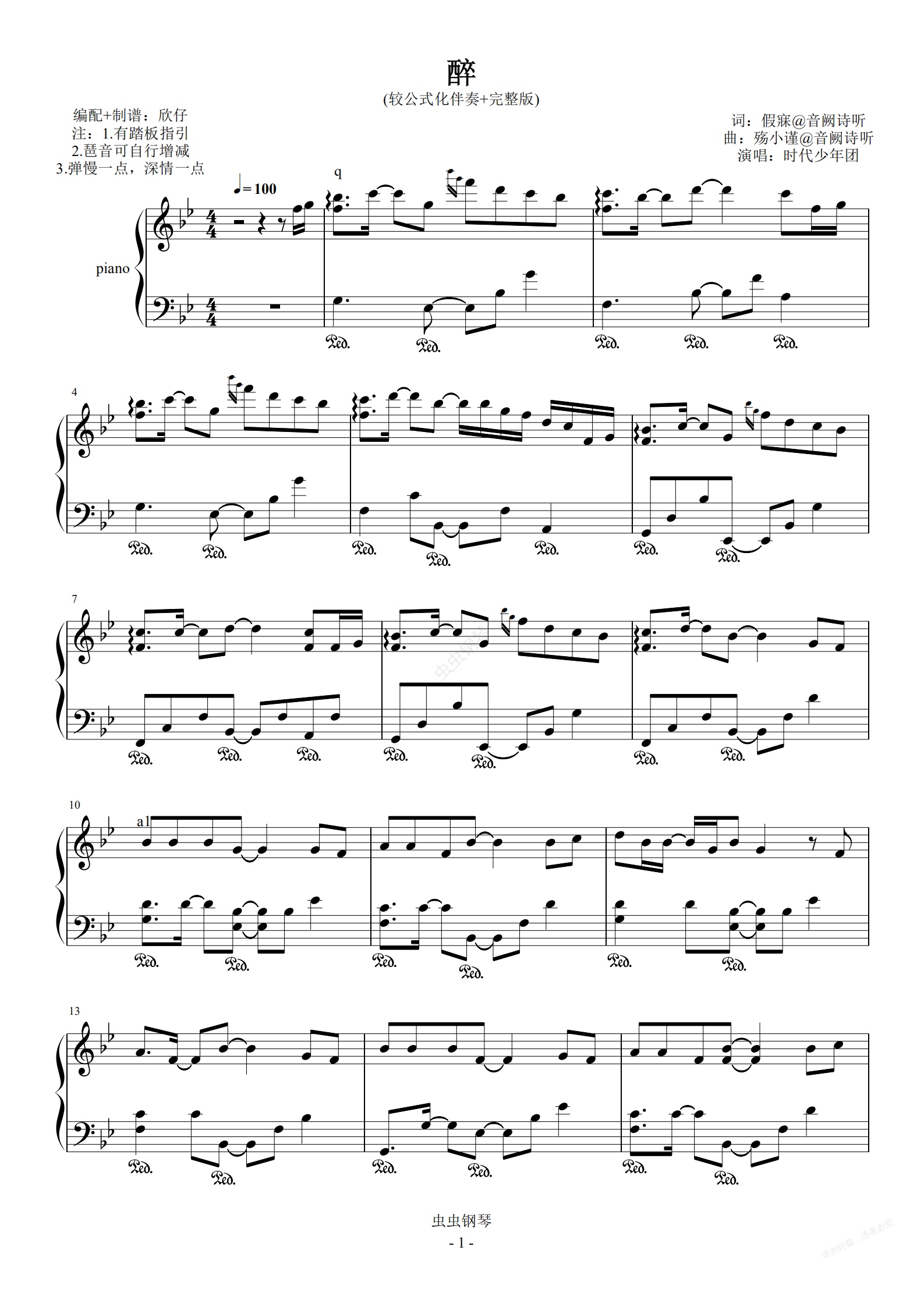 钢琴谱:时代少年团-降B《醉》(较公式化伴奏+完整版)