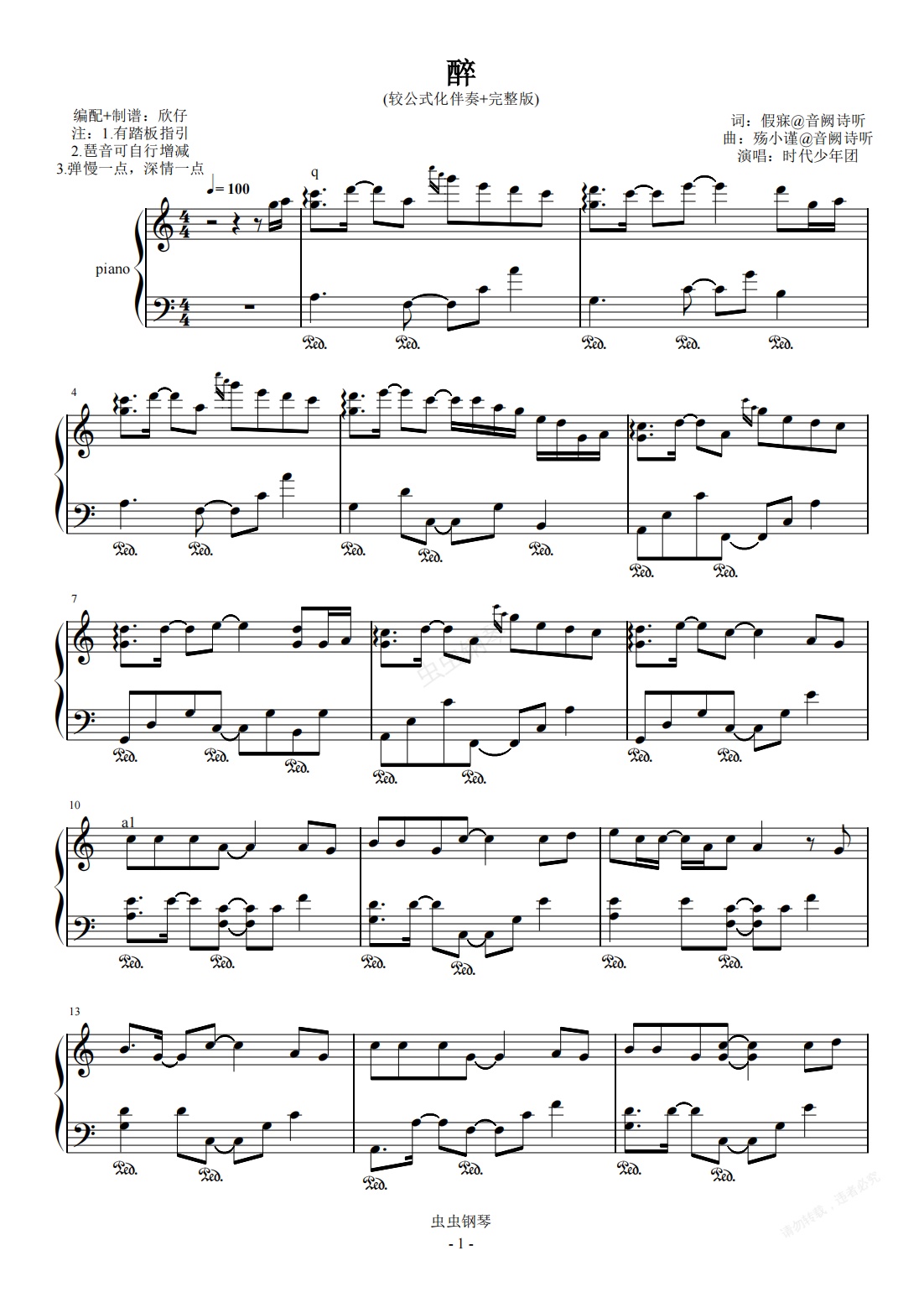 钢琴谱:时代少年团-C《醉》(较公式化伴奏+完整版)