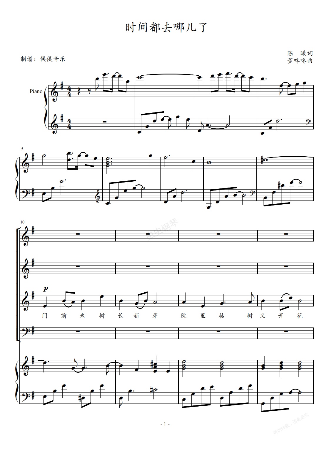 钢琴谱:时间都去哪儿了(三声部合唱伴奏谱)