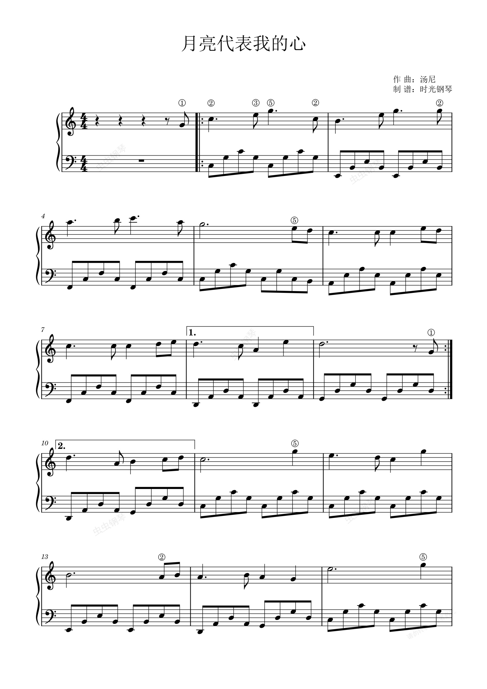 钢琴谱:月亮代表我的心