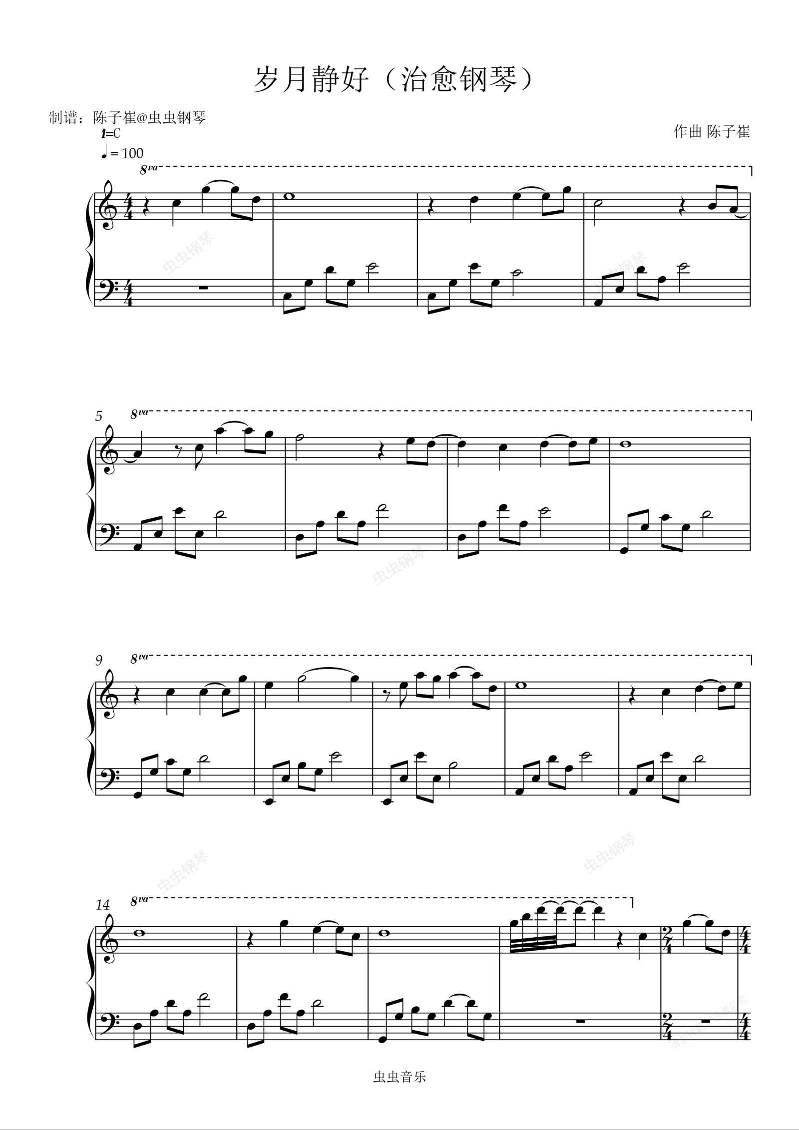 钢琴谱:岁月静好(治愈钢琴曲)-陈子崔 原版C调
