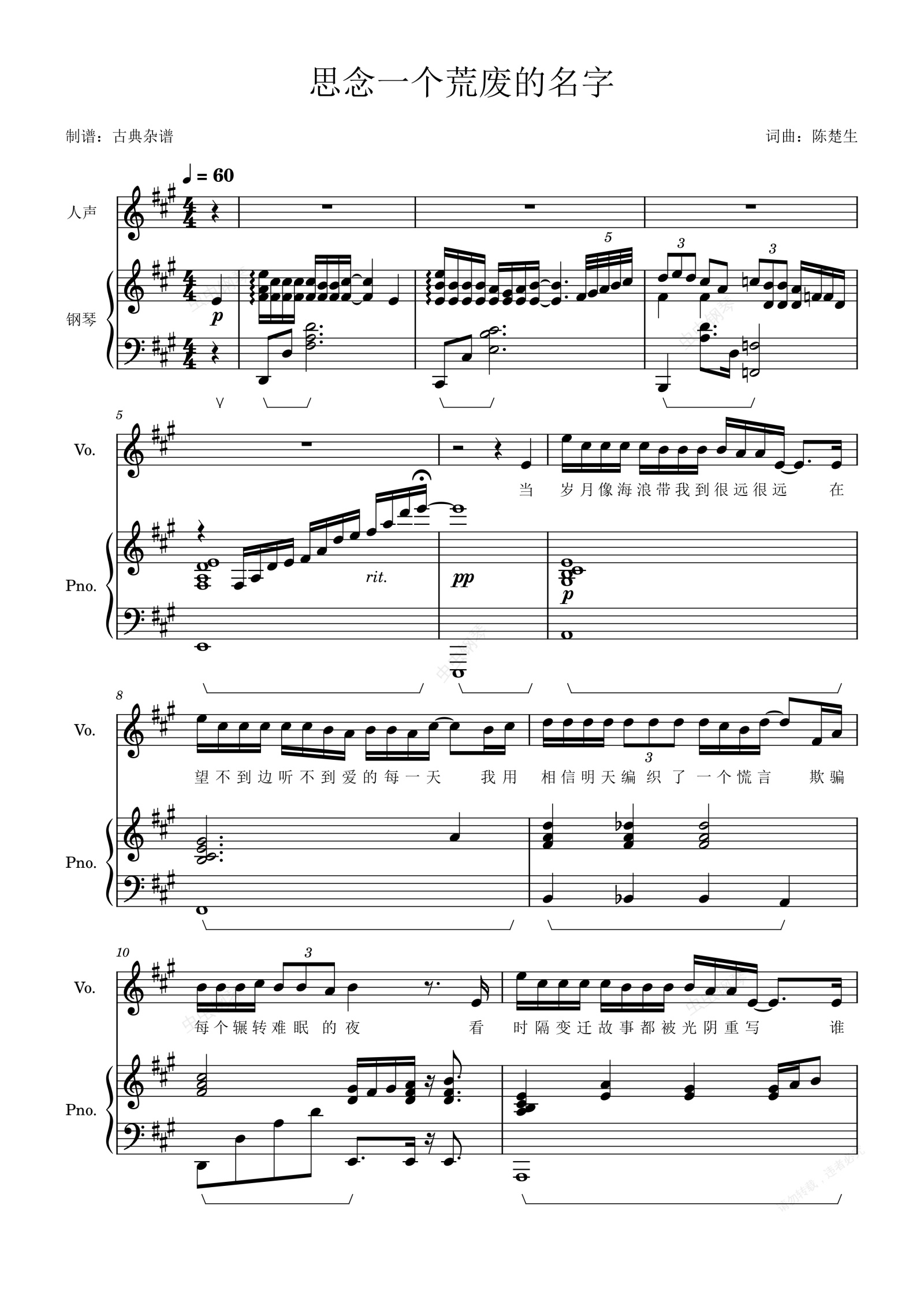 钢琴谱:思念一个荒废的名字 陈楚生,歌手LIVE